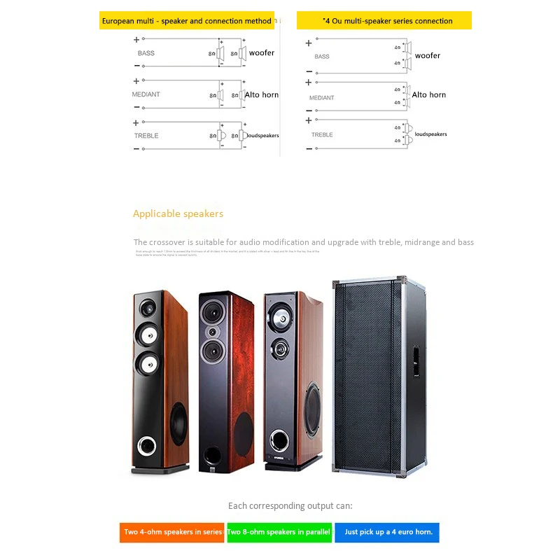 4. The special capacitor of polypropylene film voltage divider and the inductance coil of high temperature resistance wire ensure its large carrying capacity, long-term durability and very good sound quality.