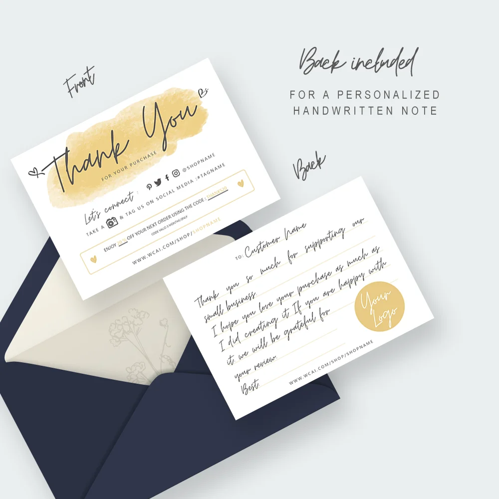 Сделай Сам спасибо за покупку карты, желтый спасибо за ваш заказ Примечание, маркетинг для малого бизнеса с купоном, вставить купон