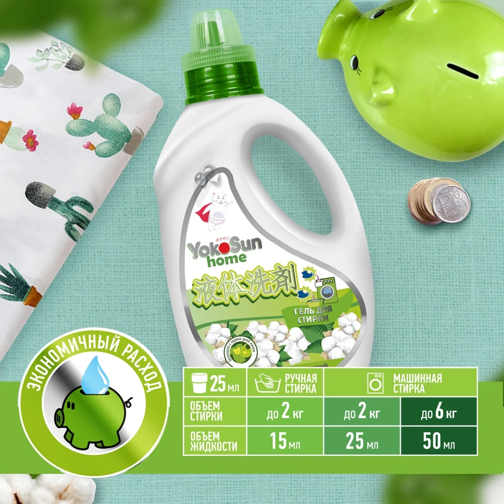 Удобная эргономичная крышка бутылочки является дозировочным колпачком и равна 25 мл. Экономичный расход: 1-2 колпачка на стирку, в зависимости от объема стирки.
