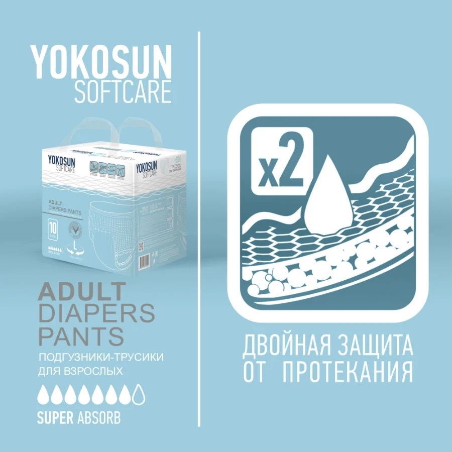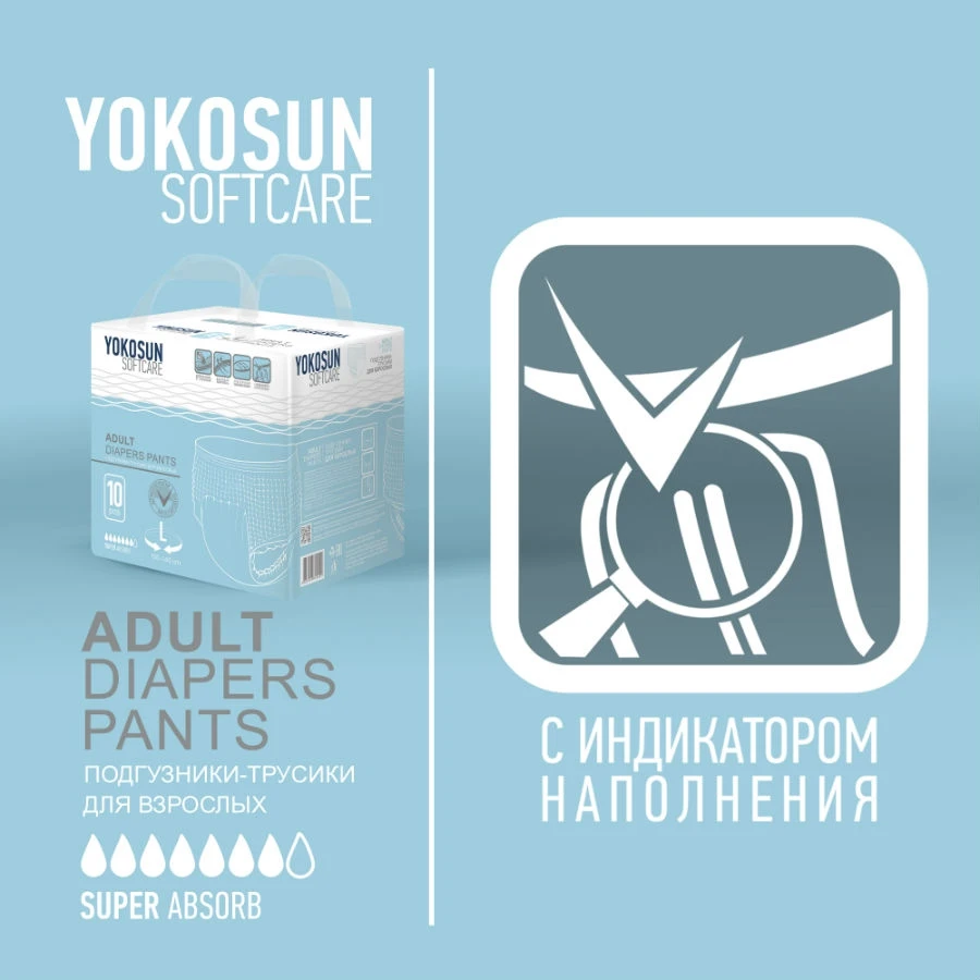 Yokosun adult panties are new breathable adult panties designed for active people and lying patients with medium and severe incontinence. Made of environmentally friendly materials without the use of chemical bleach and perfume perfumes. Hypoallergenic, dermatologically tested.