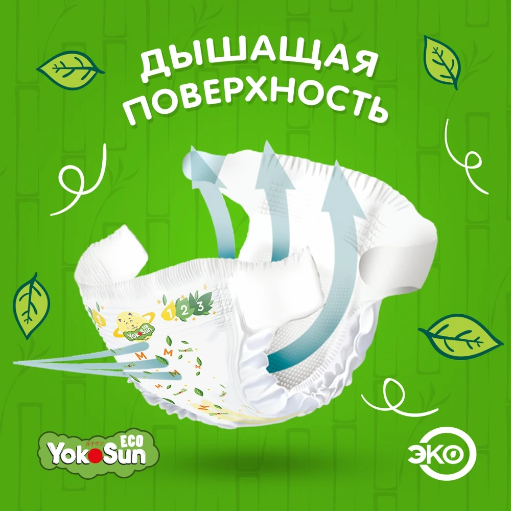 Подгузники на липучках YokoSun Eco – это новая серия подгузников торговой марки YokoSun. Отвечает всем требованиям современных мам, имеет знак качества экологичности «Эко» и рекомендована дерматологами.