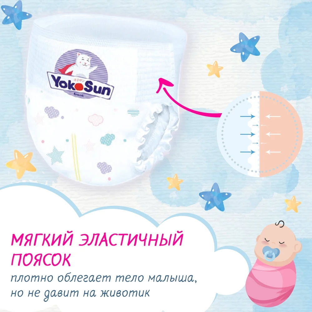 Трусики-подгузники YokoSun – это новые подгузники, отвечающие всем требованиям современных мам, имеют знак качества экологичности «Эко» и рекомендованы дерматологами.