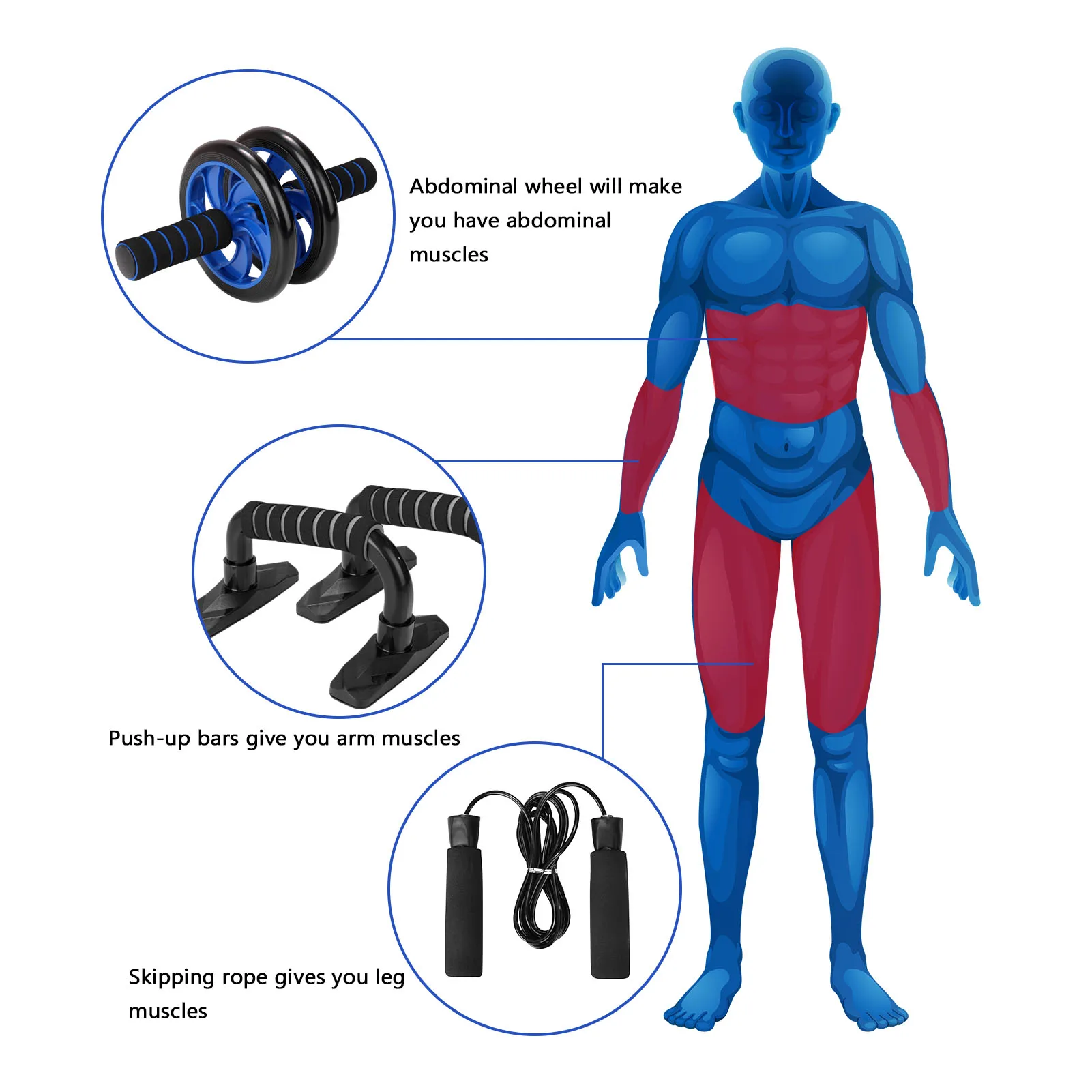 5 в 1 оборудование для домашней тренировки: включает в себя Регулируемый пуш-ап бар, весенний тренажер, AB роликовый комплект с наколенниками, поможет вам сэкономить деньги. Не нужно покупать их соответственно.