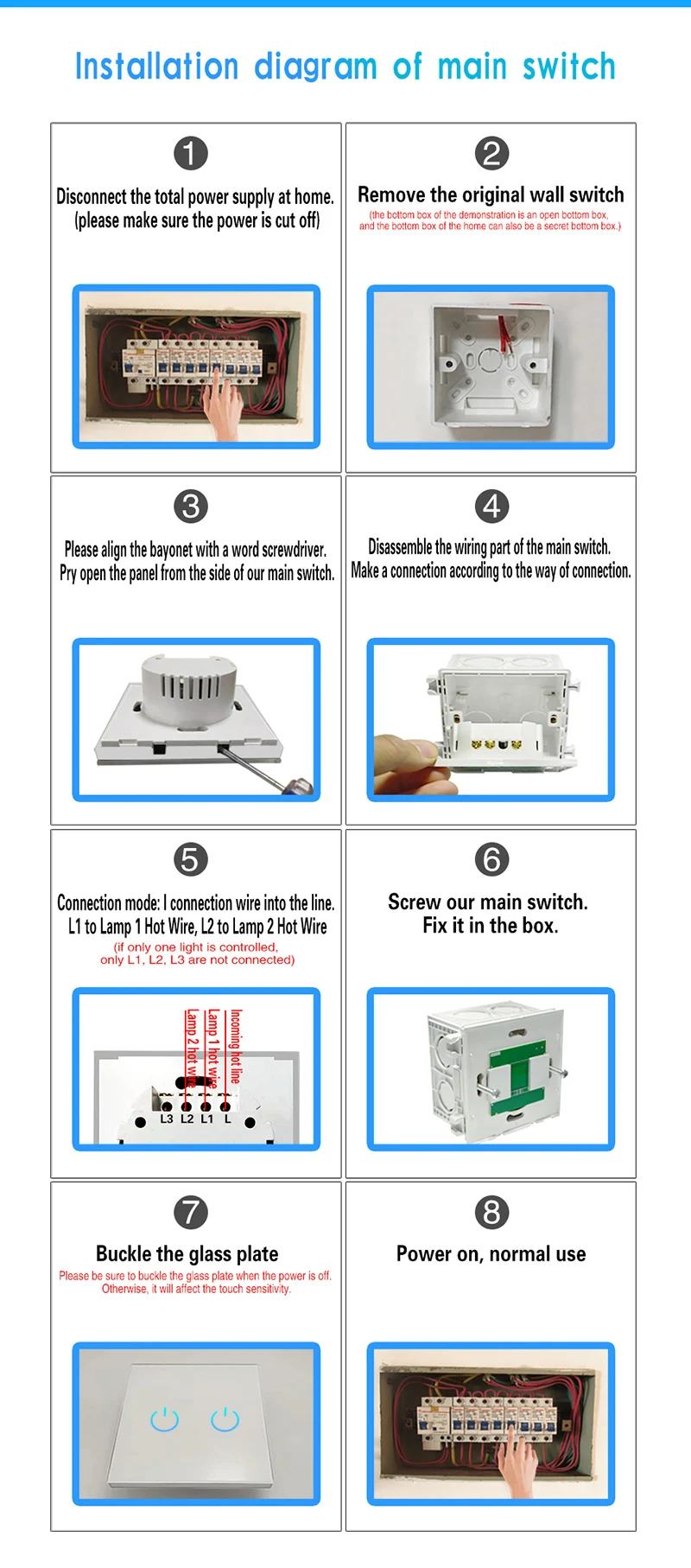 8, одножильный провод управления, легко установить, заменить старый переключатель непосредственно.