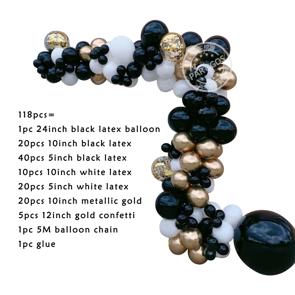 118 шт черные золотые белые Хромированные Металлические воздушные шары-гирлянды арочный комплект детский душ День рождения Свадьба Помолвка годовщина вечерние Декор
