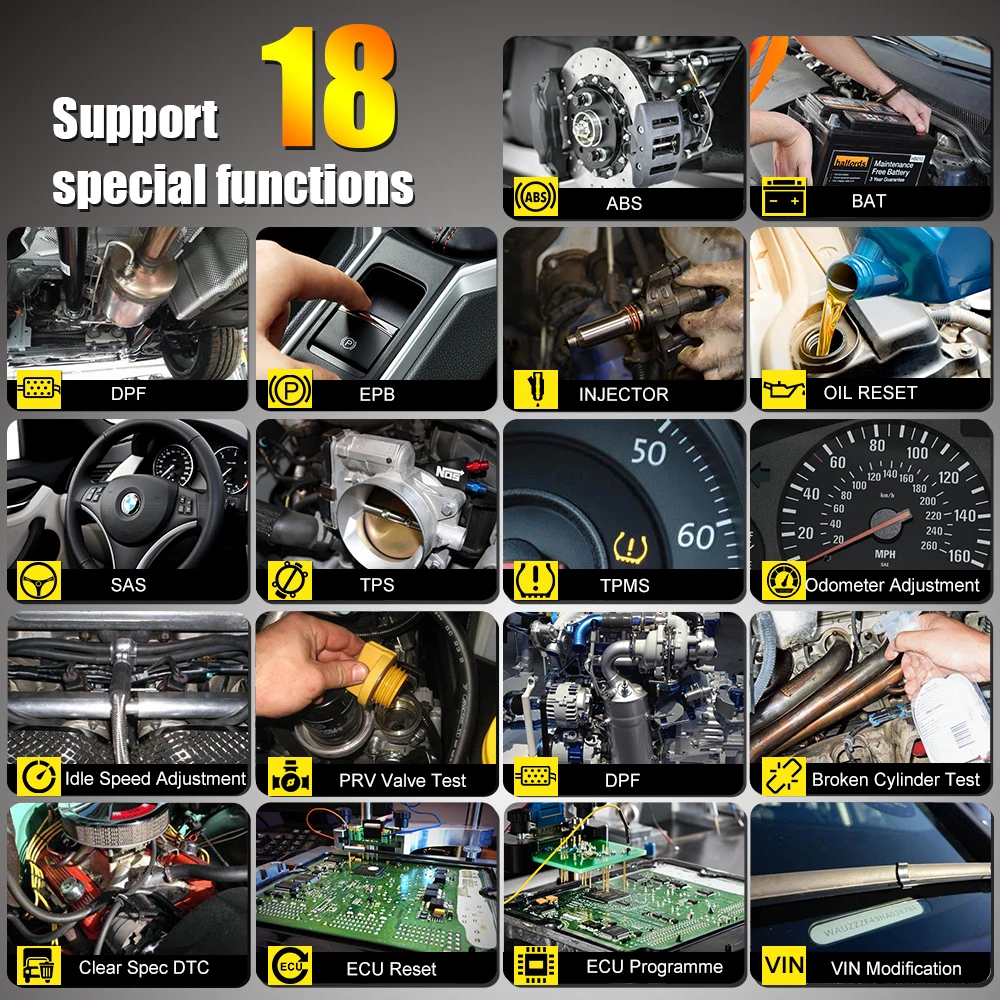 Грузовик: модификация VIN, PRV тест на клапан, Сброс ECU, регулировка скорости холостого хода, испытание сломанного цилиндра, программа ECU, четкие спецификации DTC, DPF