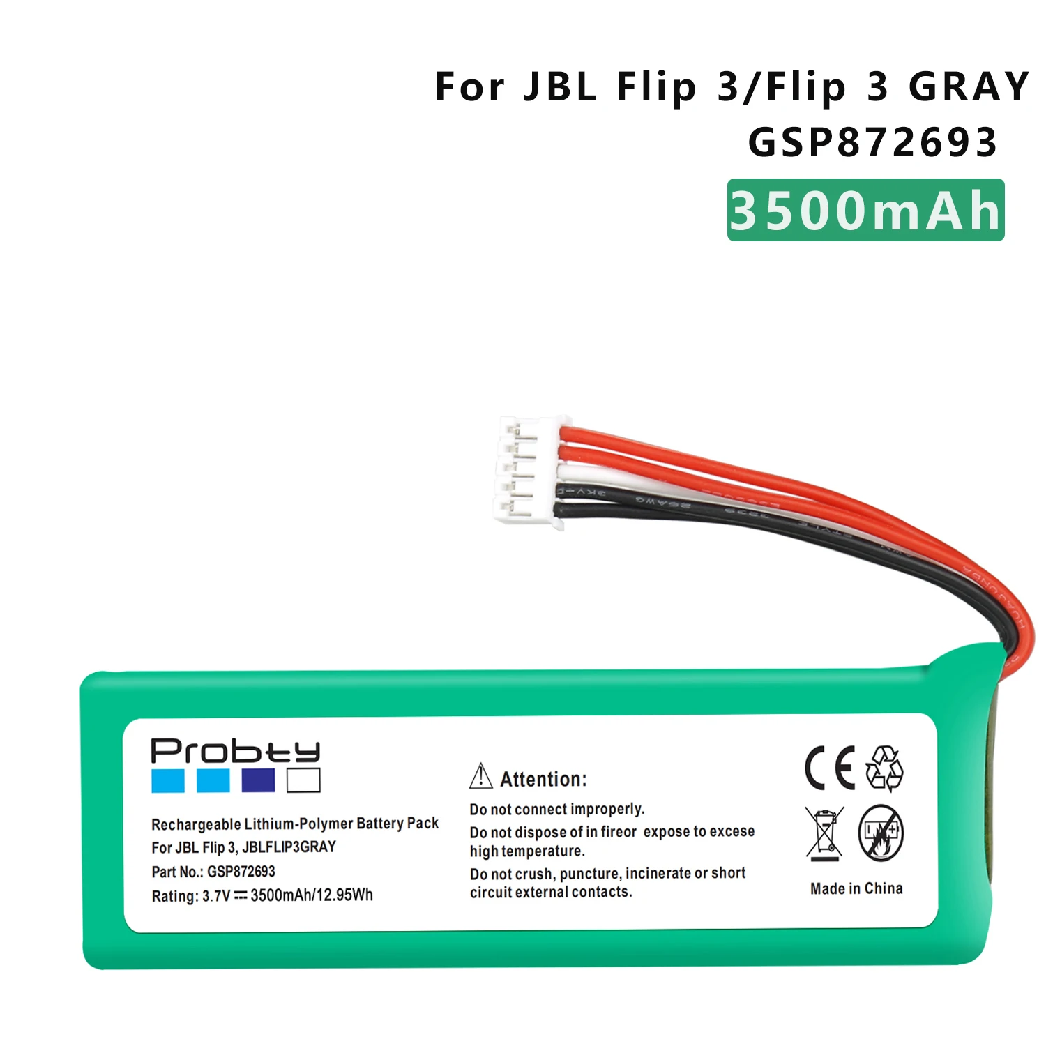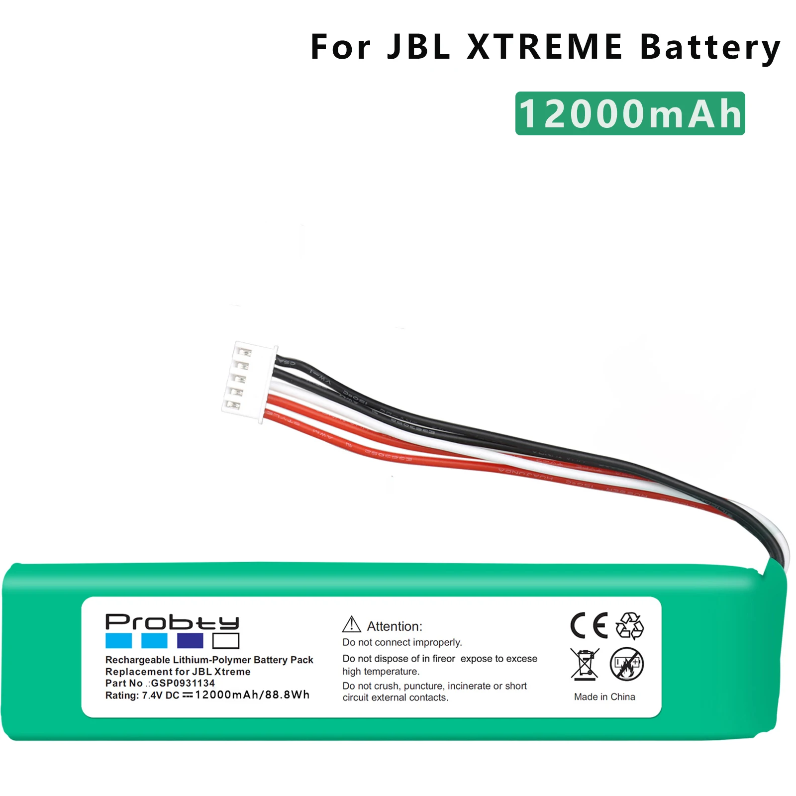 Совместимая модель: Для JBL Flip 3, JBL FLIP3 серый Часть №: GSP872693 Характеристики батареи: Напряжение: 3,7 V Емкость: 3500 мАч/12.95Wh Размеры: 94,00x29,00x10 мм Литий-полимерный аккумулятор Совместимая модель: Для JBL Flip 4, Flip 4 Special Edition Характеристики: Напряжение: 3,7 Емкость: 3500 мАч/12.95Wh Литий-полимерный аккумулятор Спецификация товара Напряжение: 7,4 В постоянного тока Емкость: 12000 мАч/88.8Wh Состояние: новый продукт для замены, работает как оригинальные детали, 100% OEM совместимость! Номер детали Repalce GSP0931134 Совместимые модели Для беспроводного динамика JBL Xtreme Советы по использованию: 1. Прекратите использование любых приложений, которые не используются. 2. Выключите вибрацию и кольцо для уменьшения тона и таймаута экрана. 3. Избегайте воздействия батареи на жидкость или при сильных механических ударах. 4. Избегайте перезарядки и перегрузки. Пожалуйста, прекратите зарядку, когда аккумулятор заряжен на 100%. 5. Избегайте воздействия высоких температур 140 °F/60 °C. Удерживайте батарею от 5% до 95%. 6. Не замыкайте батарею. Случайное короткое замыкание может произойти, когда металлический предмет, такой как Зажим для монет или ручка вызывают прямое соединение положительных (+) и отрицательных (-) клемм батареи Замыкание клемм может повредить аккумулятор соединительного объекта. Список посылка По вашему выбору