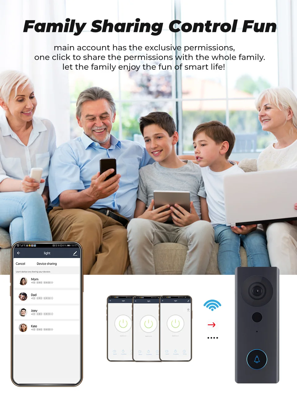 Уникальные точки продажи WIFI Кнопка дверной звонок: