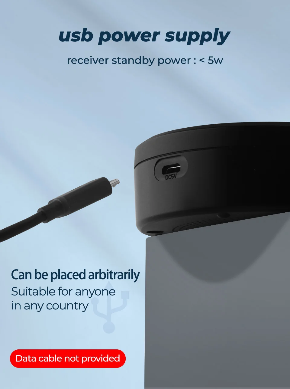 Питание в режиме ожидания приемника: <5 Вт (не предоставляется кабель для передачи данных + зарядное устройство USB)