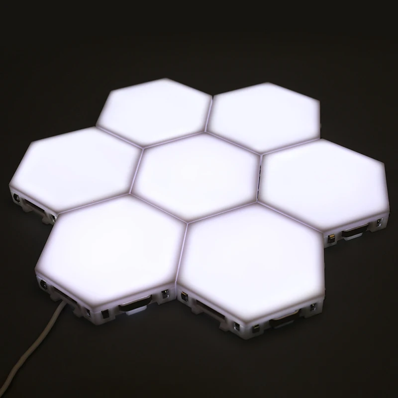 Высококачественный АБС-пластик и поликарбонат абажур материалы, равномерный светильник и сильный светильник передачи. Физическое прикосновение может включить и выключить настенный светильник. Когда тело пользователя касается поверхности, емкостный датчик выступает в качестве переключателя для открытия или закрытия каждого компонента. Компоненты могут быть легко соединены вместе с помощью магнита, расположенного на краю продукта. Шестигранная форма позволяет соединять эти компоненты и предоставляет возможности для различных конструкций. Уникальный геометрический дизайн, не только может быть освещен, но и может украсить ваш дом. Широко используется, может быть помещен в гостиную, спальню, кабинет, ресторан, отель и т. Д.