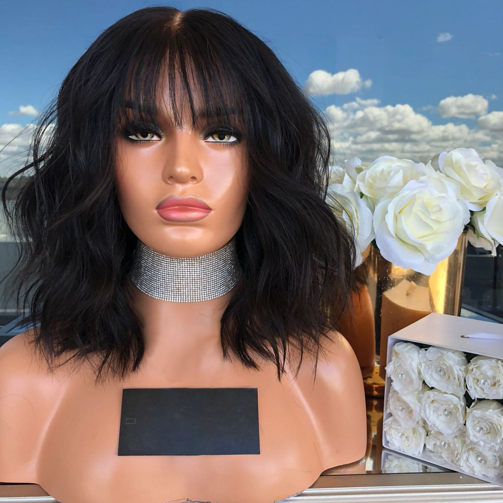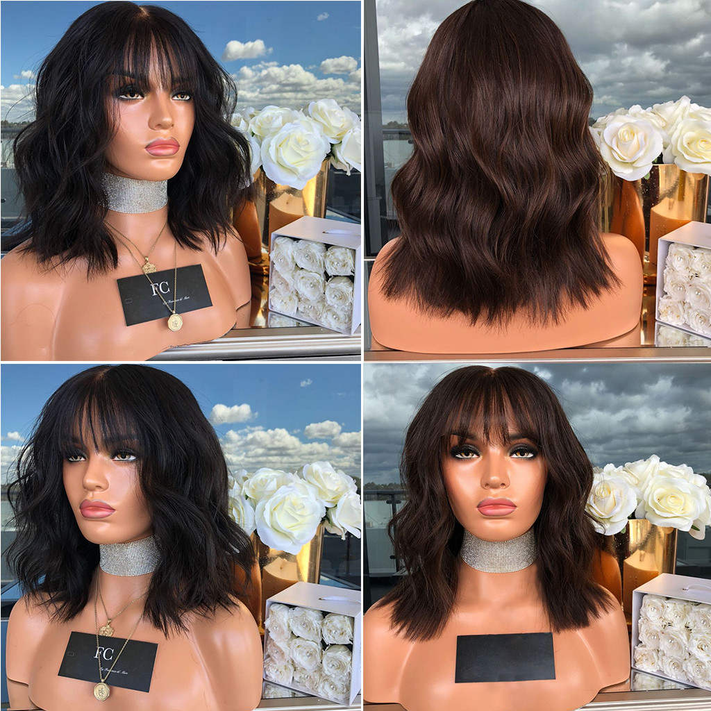 Горячая Мода Стиль кукурузы женские короткие черные микро кудрявые парик БОБО бразильский полный парик Боб волна натуральные длинные парики воздух челка мягкий парик