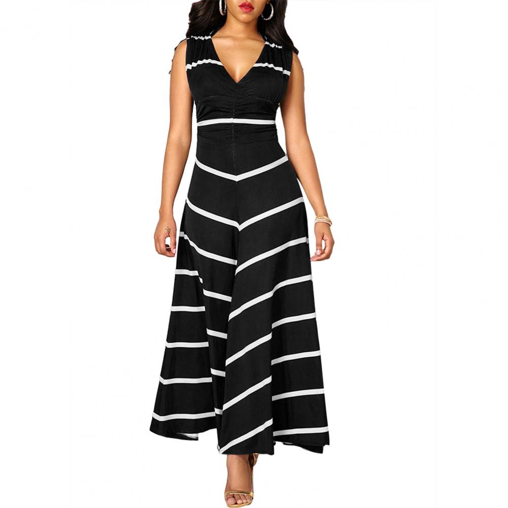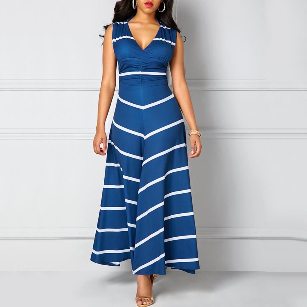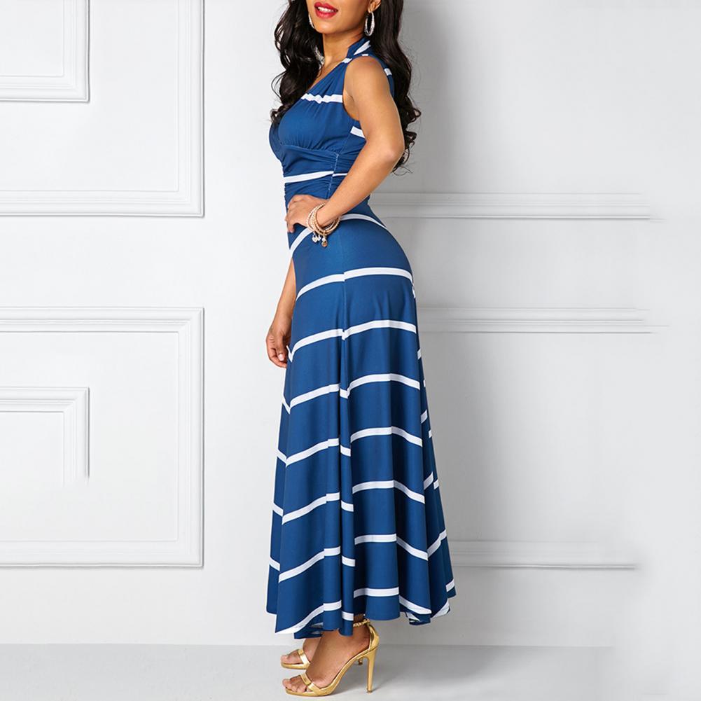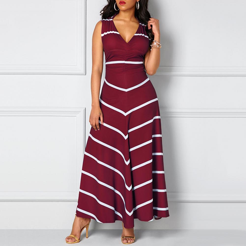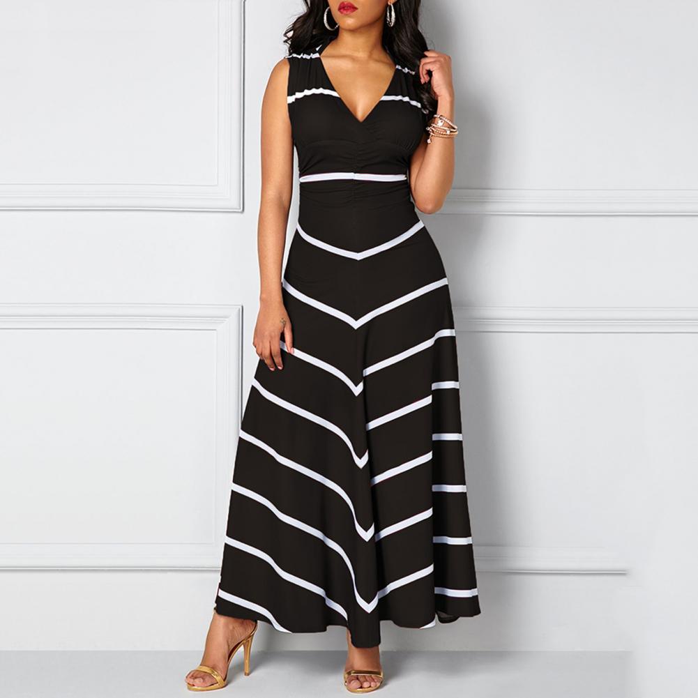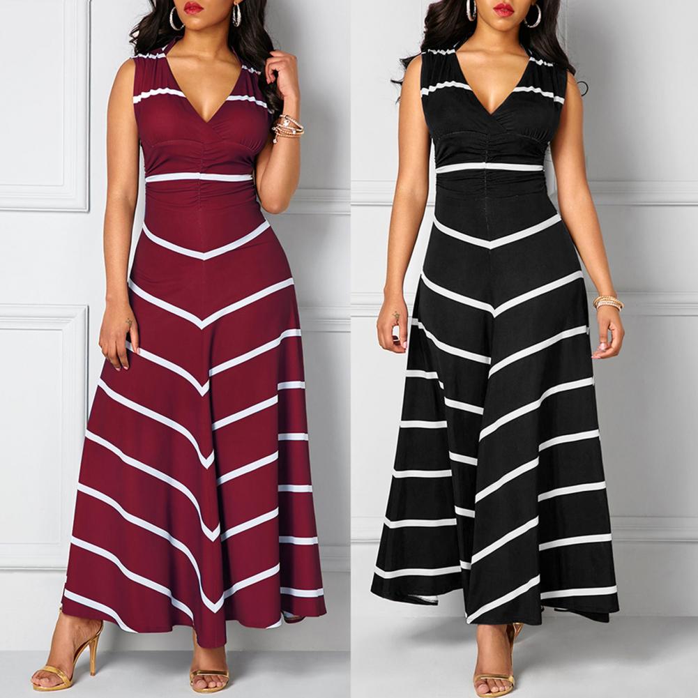 Модное платье размера плюс, летнее женское облегающее платье макси в полоску с v-образным вырезом без рукавов с высокой талией для женщин Vestido