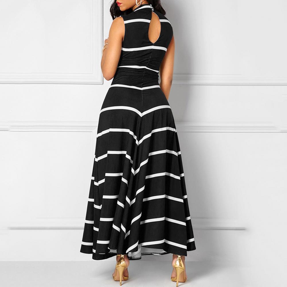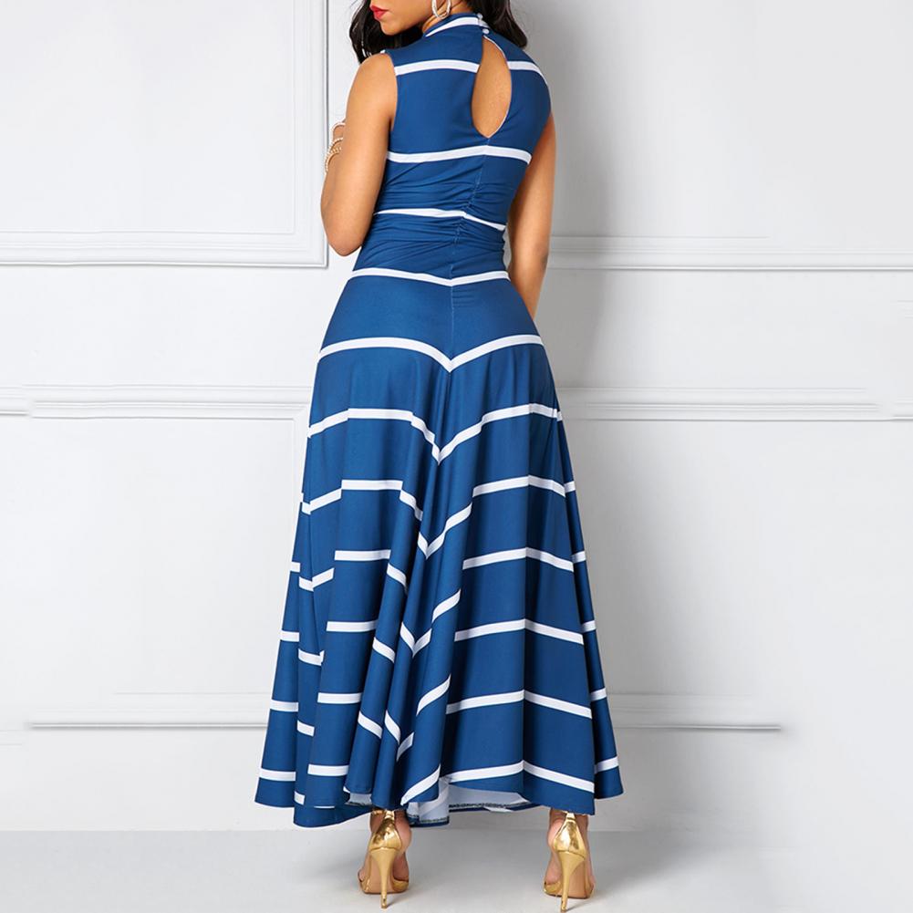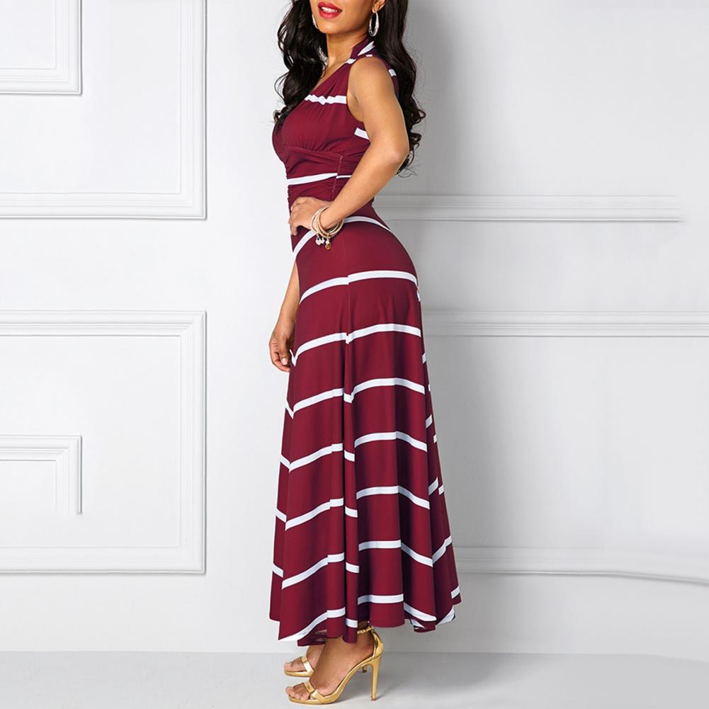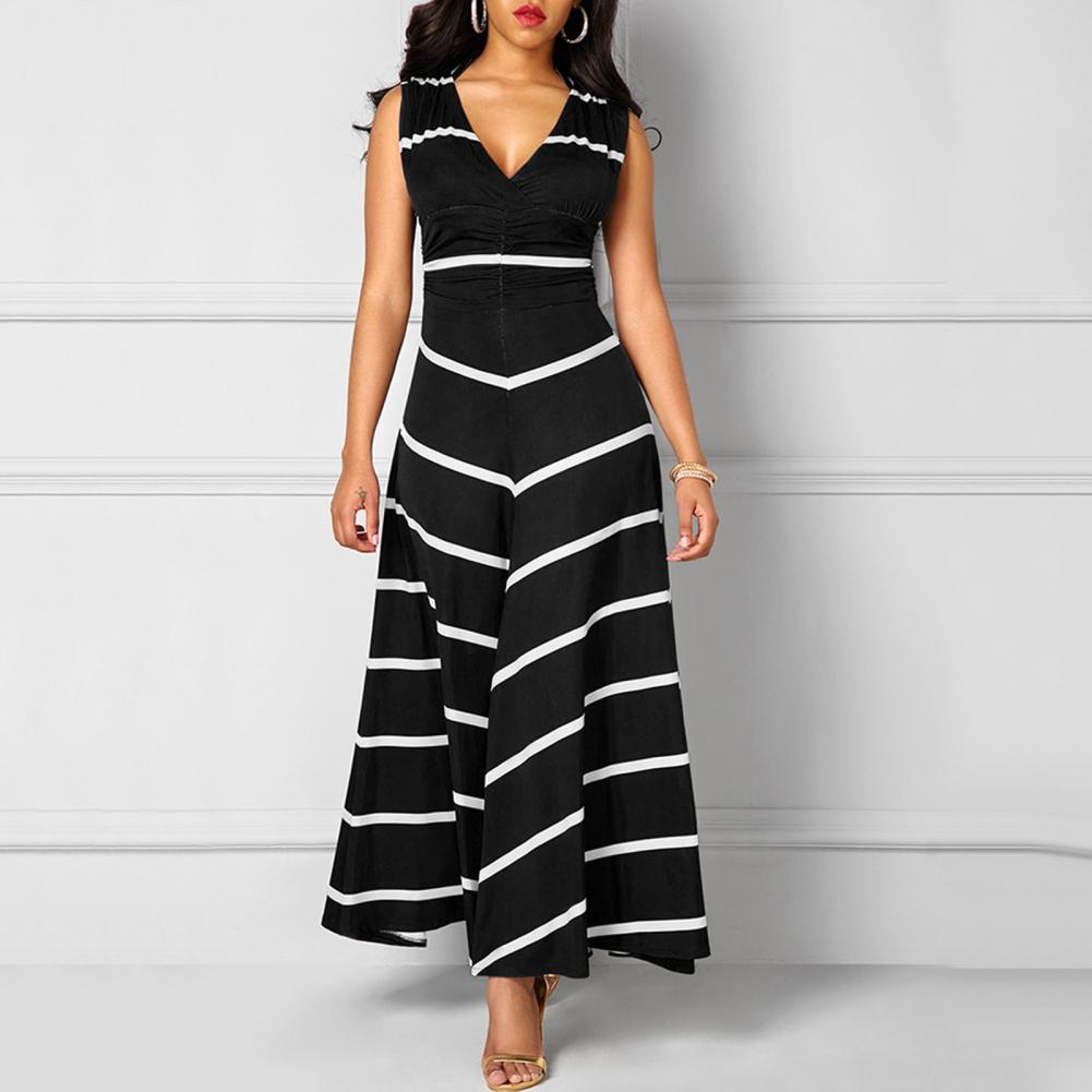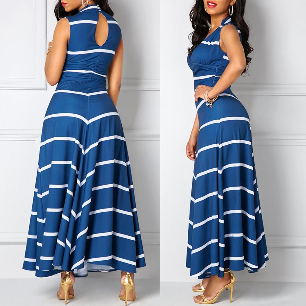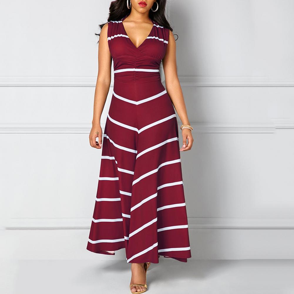 Модное платье размера плюс, летнее женское облегающее платье макси в полоску с v-образным вырезом без рукавов с высокой талией для женщин Vestido