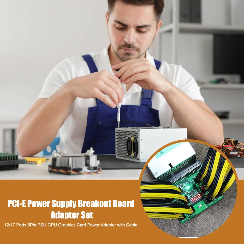 Профессия minningPCI-E Питание коммутационная плата адаптера набор 12/17 Порты 6Pin PSU GPU Графика карта адаптер питания с кабелем