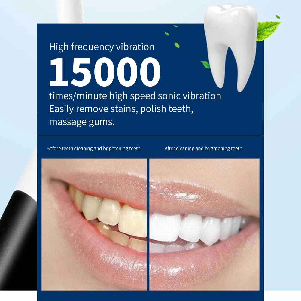 -Высокочастотная вибрация, звуковая вибрация 12000 раз, а также профессиональная чистящая головка эффективно помогают устранить Зубное вычисление, налет и пятна, обеспечивая тщательную очистку зубов. Открывание одной кнопкой, простота в эксплуатации.