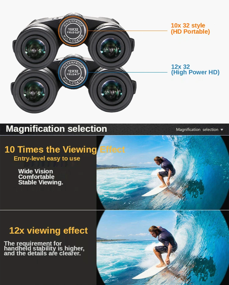 10x32 HD бинокулярный телескоп, IPX-7, водонепроницаемый, с низким освещением, ночного видения, бинокль для охоты, наблюдения за птицами, кемпинга, путешествий