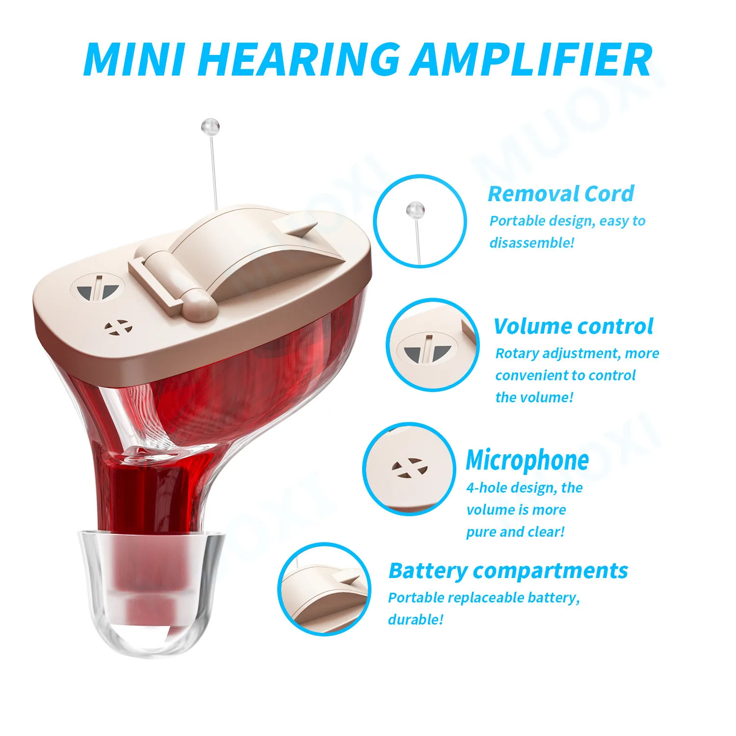 Звуковой выход (SSPL) 120 + 3 дБ Усиление звука (DSPL) 25 ± 5 дБ E0 входной шум 32 дБ Диапазон частот 450 Гц ~ 5000 Гц Рабочий ток 2ма Гармонические волновые искажения (THD) 4% Батарея/тип ячейки A10 НАПРЯЖЕНИЕ D.C.1.3V Есть свисток, когда вы вставляете батарею в слуховой аппарат. Пожалуйста, не волнуйтесь. Потому что давление воздуха будет свистеть. 1. Пожалуйста, настройте меньший объем. 2. Выберите подходящий разъем для уха 3. Убедитесь, что если вы плотно Положите Заушник, утечка звука сделает свисток.
