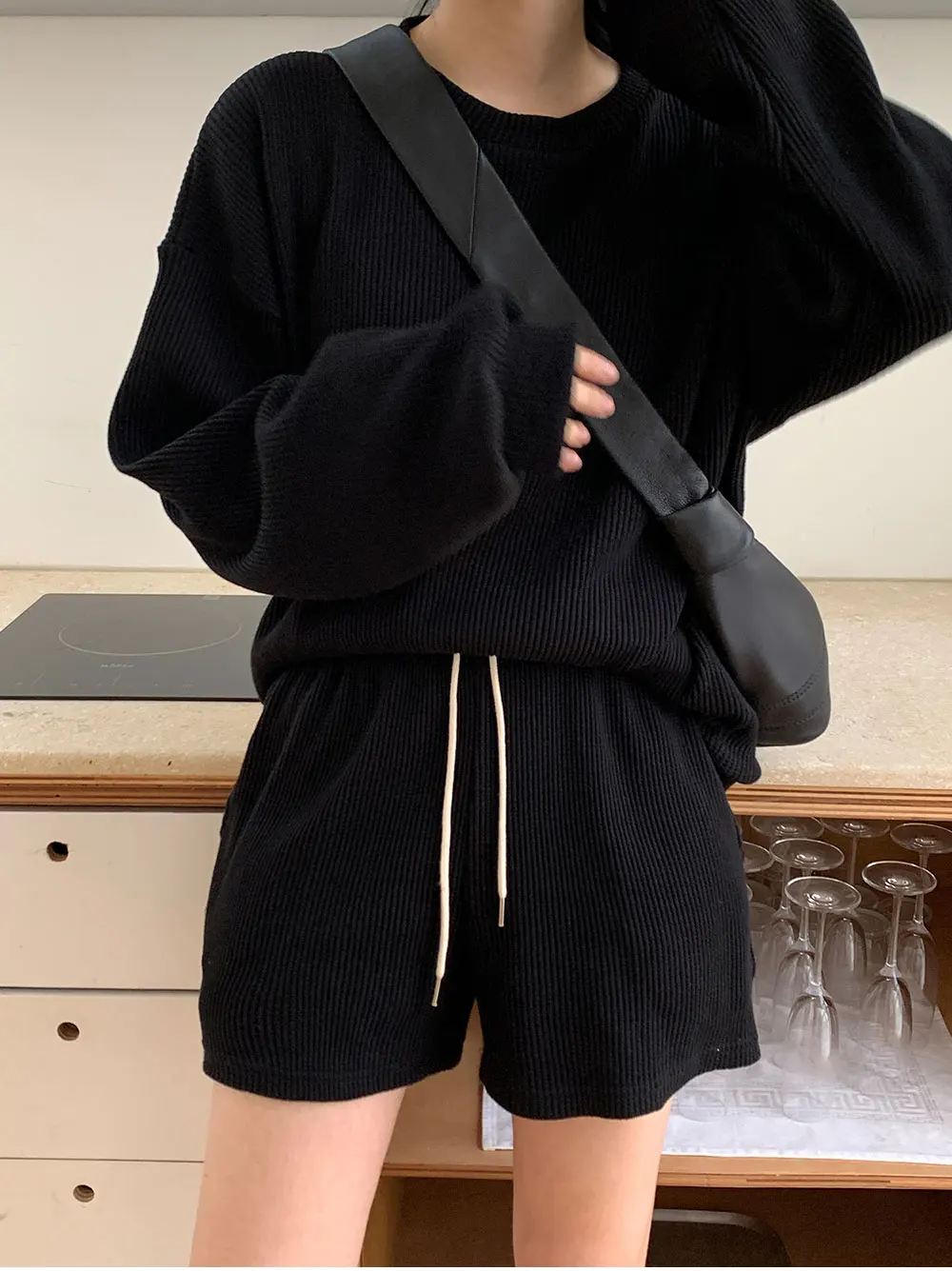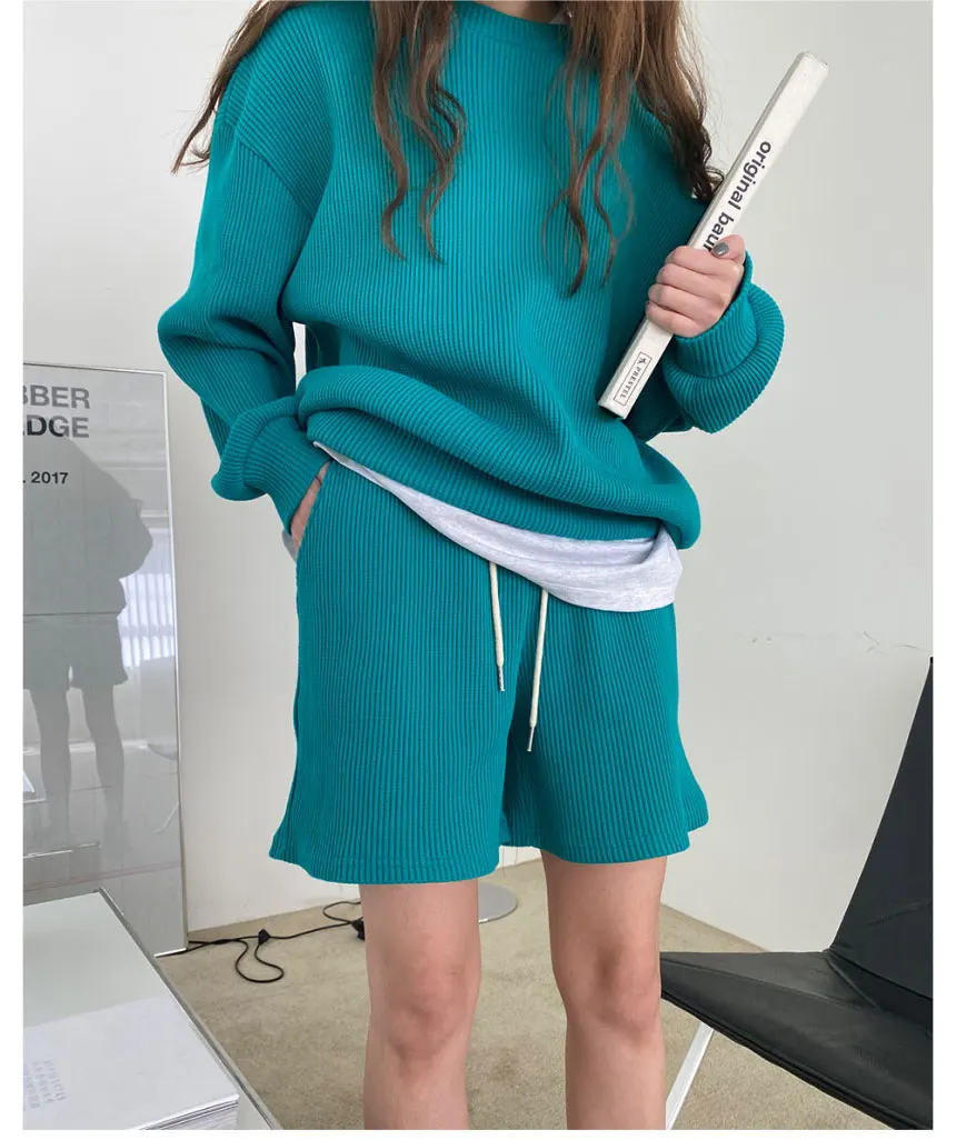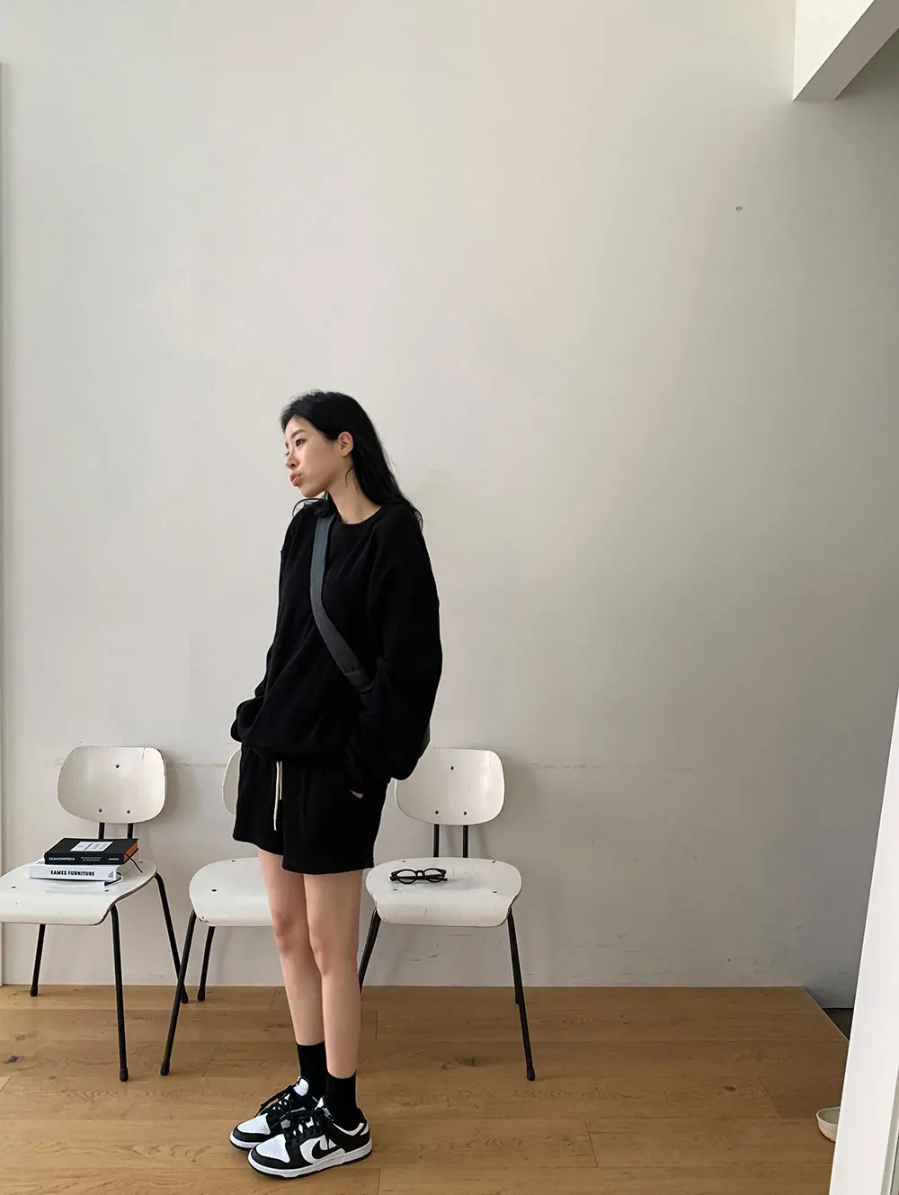 Top: Shoulder 59cm Chest 116cm Sleeve 55cm Length 65cmShorts: Waist 60-74cm Length 35cm Hip 110cm