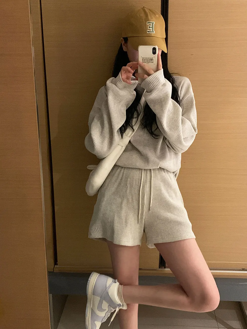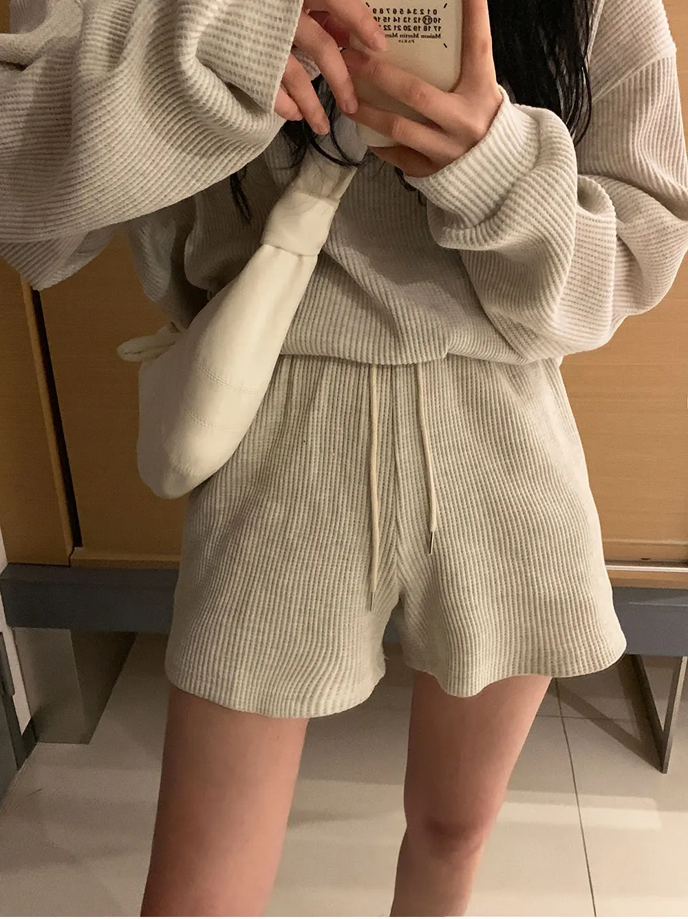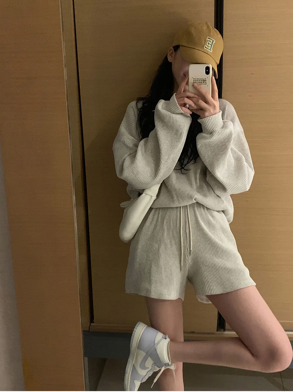Top: Shoulder 59cm Chest 116cm Sleeve 55cm Length 65cmShorts: Waist 60-74cm Length 35cm Hip 110cm