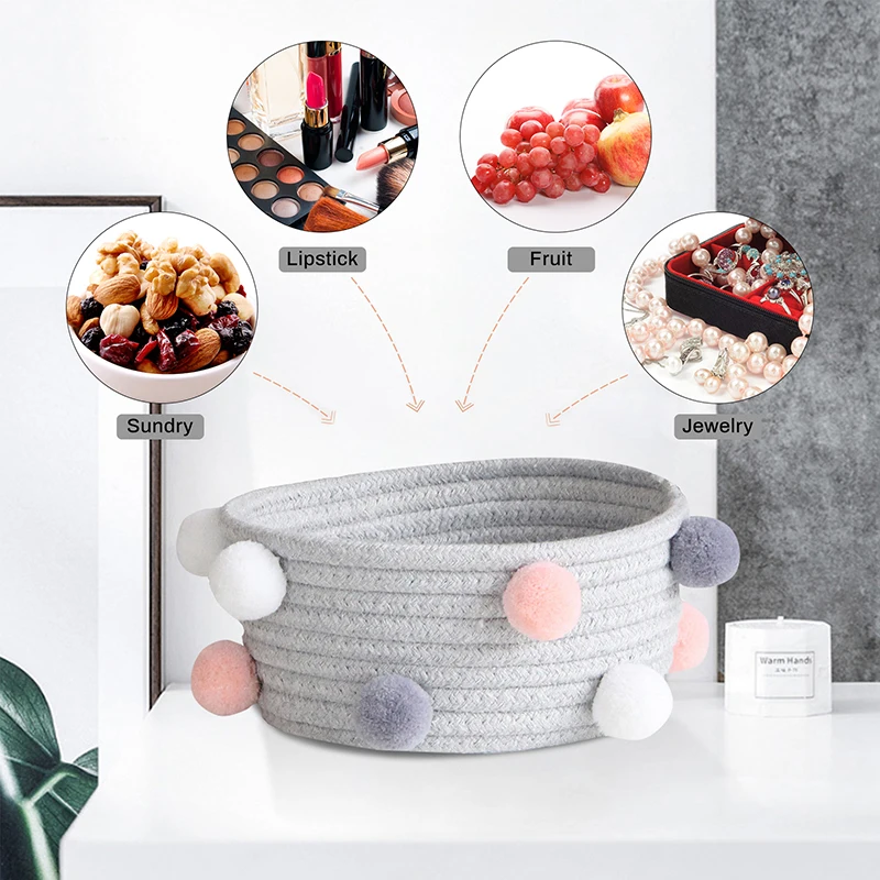 INS Pompom хлопчатобумажная веревка ручные тканые корзины Детские ящики для хранения корзина для белья и грязной одежды игрушки Настольный органайзер для мелочи