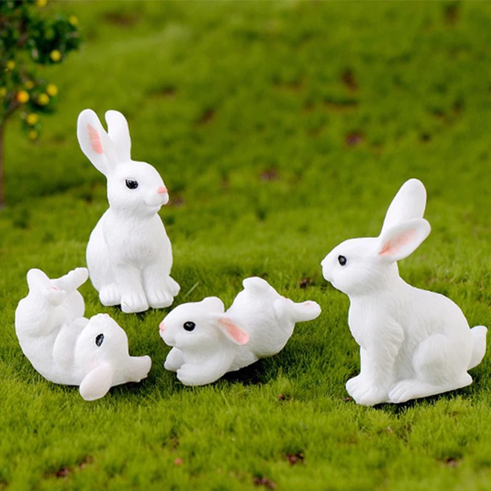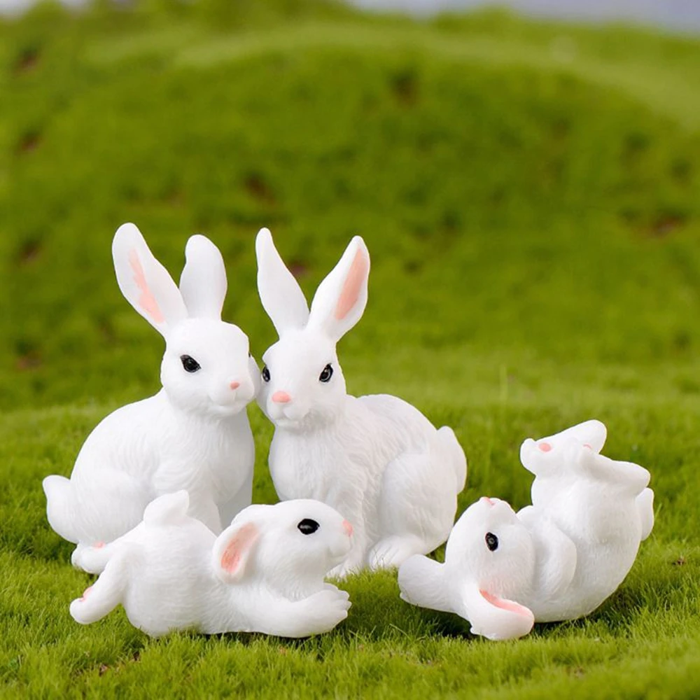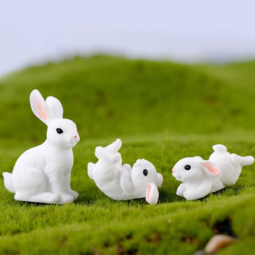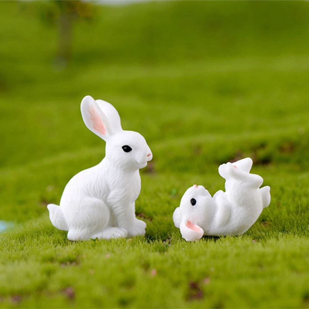 Cute Rabbit Easter Miniature Resin Craft Mini Bunny Ornament Fairy Garden Supplies Home Figurine Animal Garden Ornament