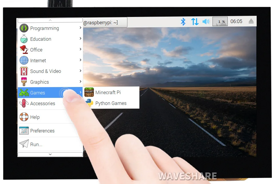 Поддерживает Raspbian, 5 точек касания, драйвер