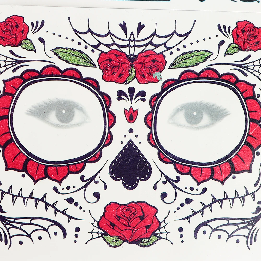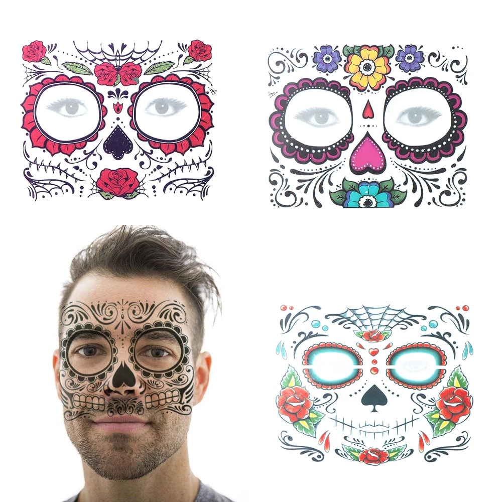 Временные тату-наклейки на лицо с принтом «День мертвых Черепов» для Хэллоуина, Специальная водонепроницаемая татуировка на лицо