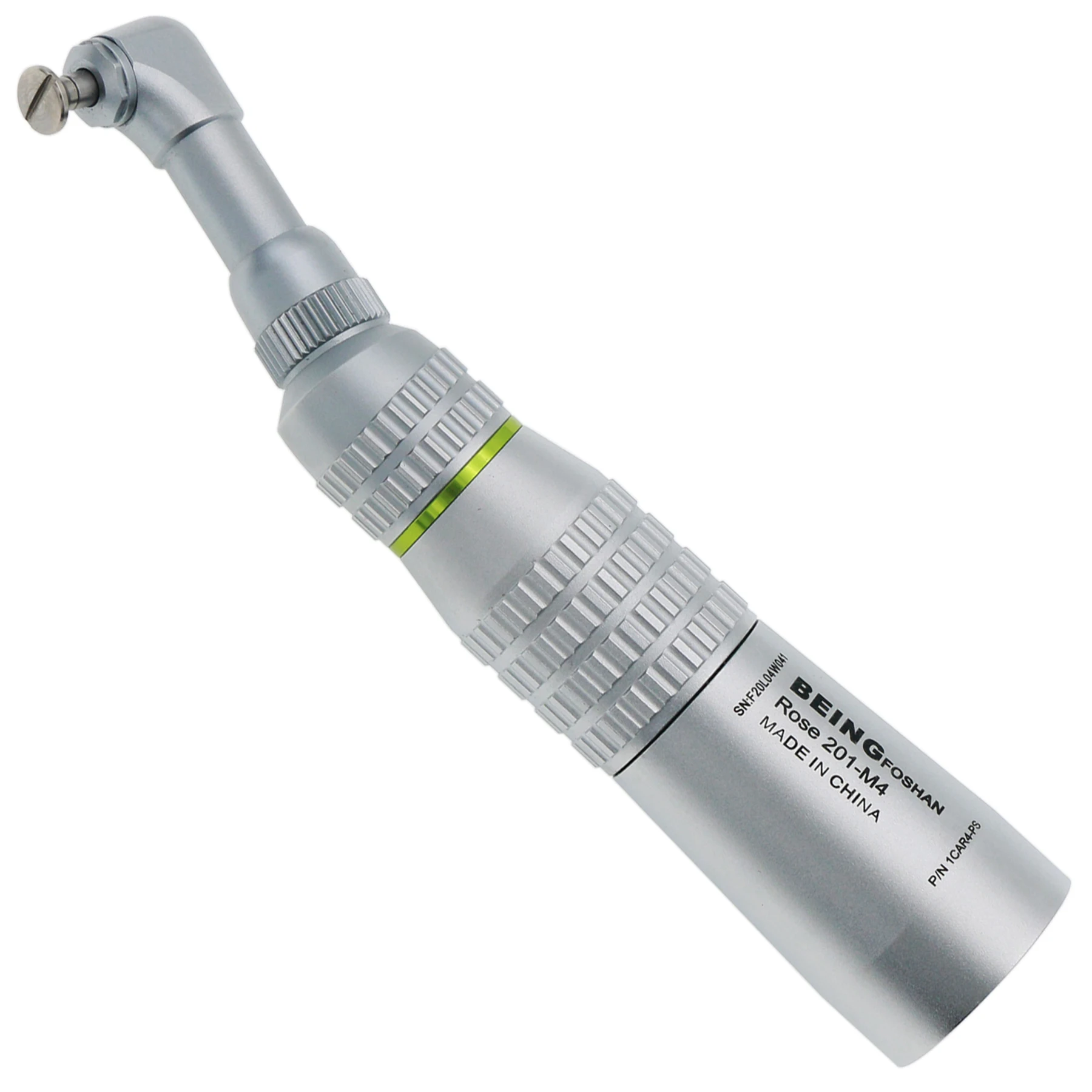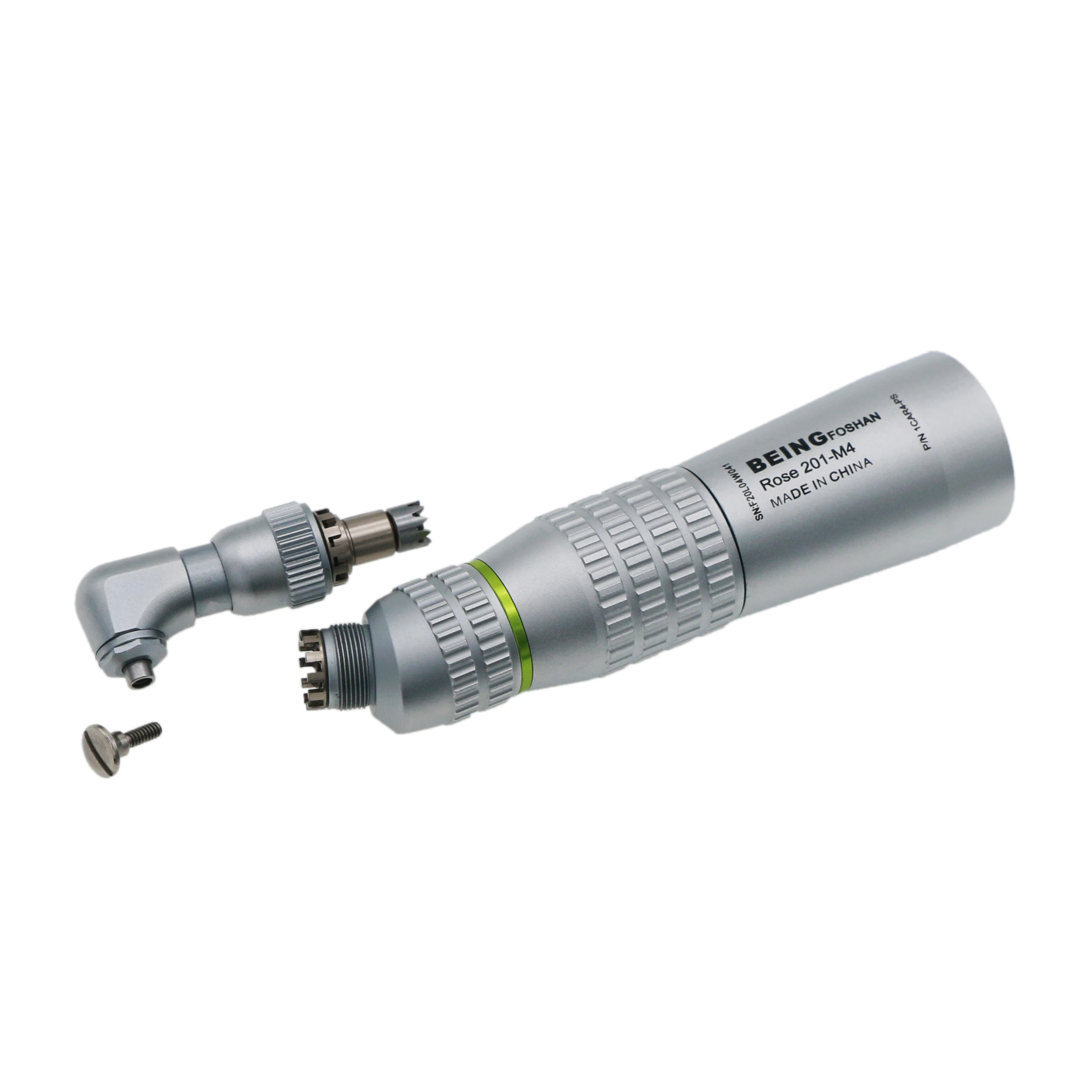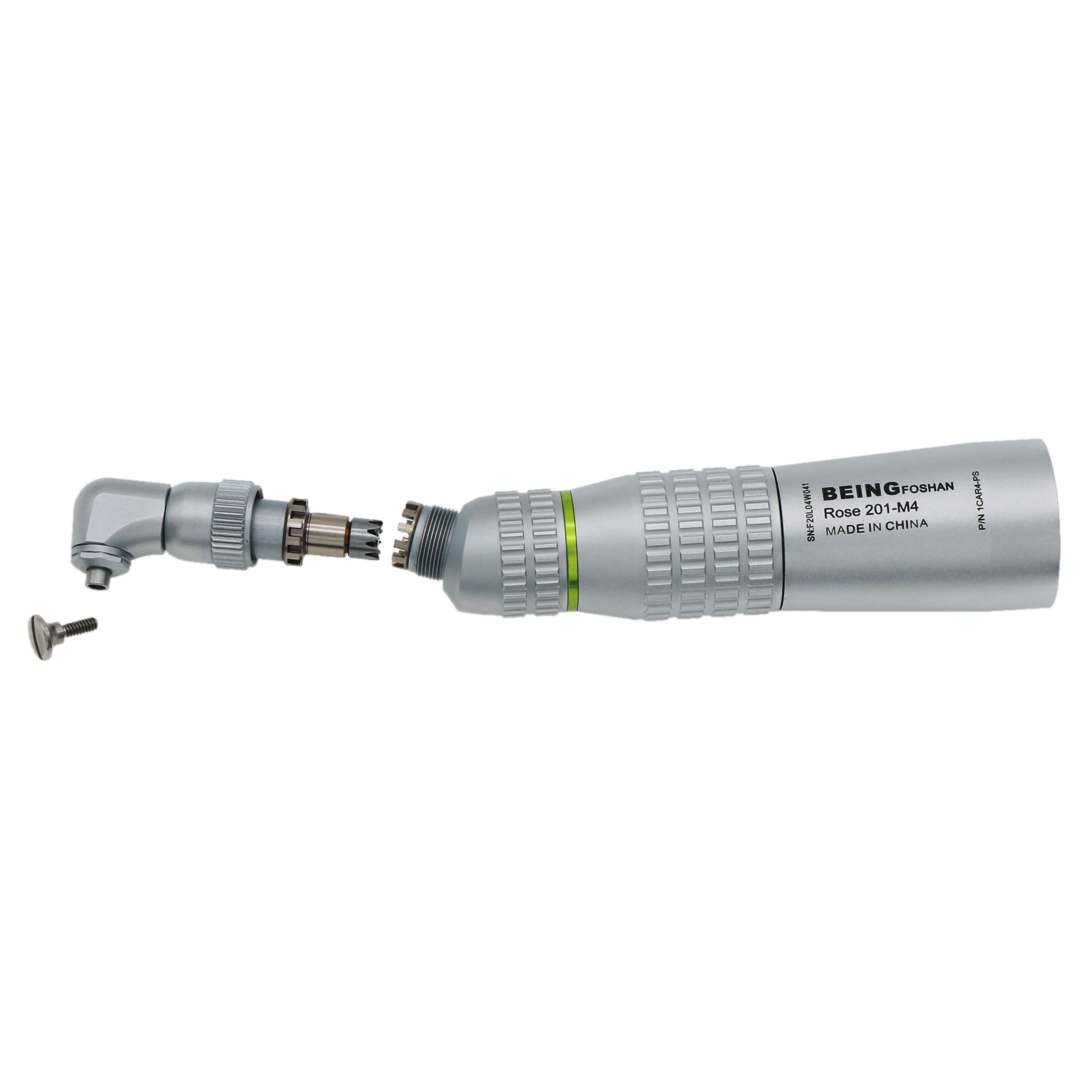 ISO E Type Fit all Motor NSK, KaVo®, Sirona®, W&H®, Bien-Air® Description: Brand:Being 4:1 Reduction Low Speed Screw In Prophy Hygiene Contra Angle Handpiece CE Certificated Model: 201CAR4-PS 4:1 Contra angle fits all E-type ISO standard motors For screw-in Snap-on cups and brushes NSK style. The head is exchangeable with NSK contra angle For dental hygienist prophy polishing Note: this handpiece head uses screw-in or Snap-on prophy brush and burs, does not fit standard. If you want to use with standard burs, pls contact us.