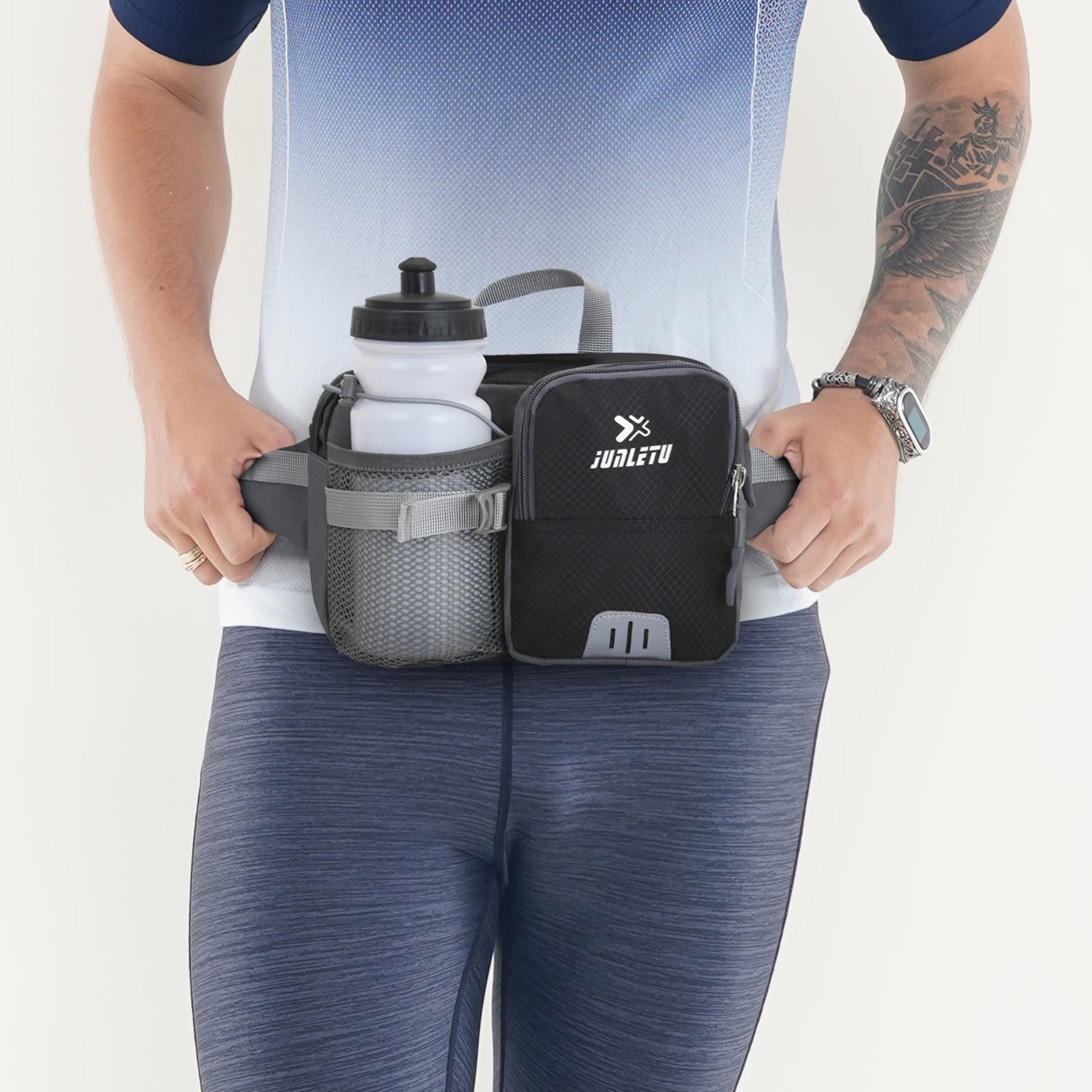 Эта поясная сумка изготовлена из устойчивой к царапинам ткани Оксфорд для обеспечения долговечности. Имеет основной карман на молнии, передний карман и сетчатый карман для бутылки с водой. Поясной ремень полностью регулируется для разных размеров талии. Он отлично подходит для кемпинга, пеших прогулок, велоспорта, бега, фитнеса, покупок и других видов спорта на открытом воздухе.