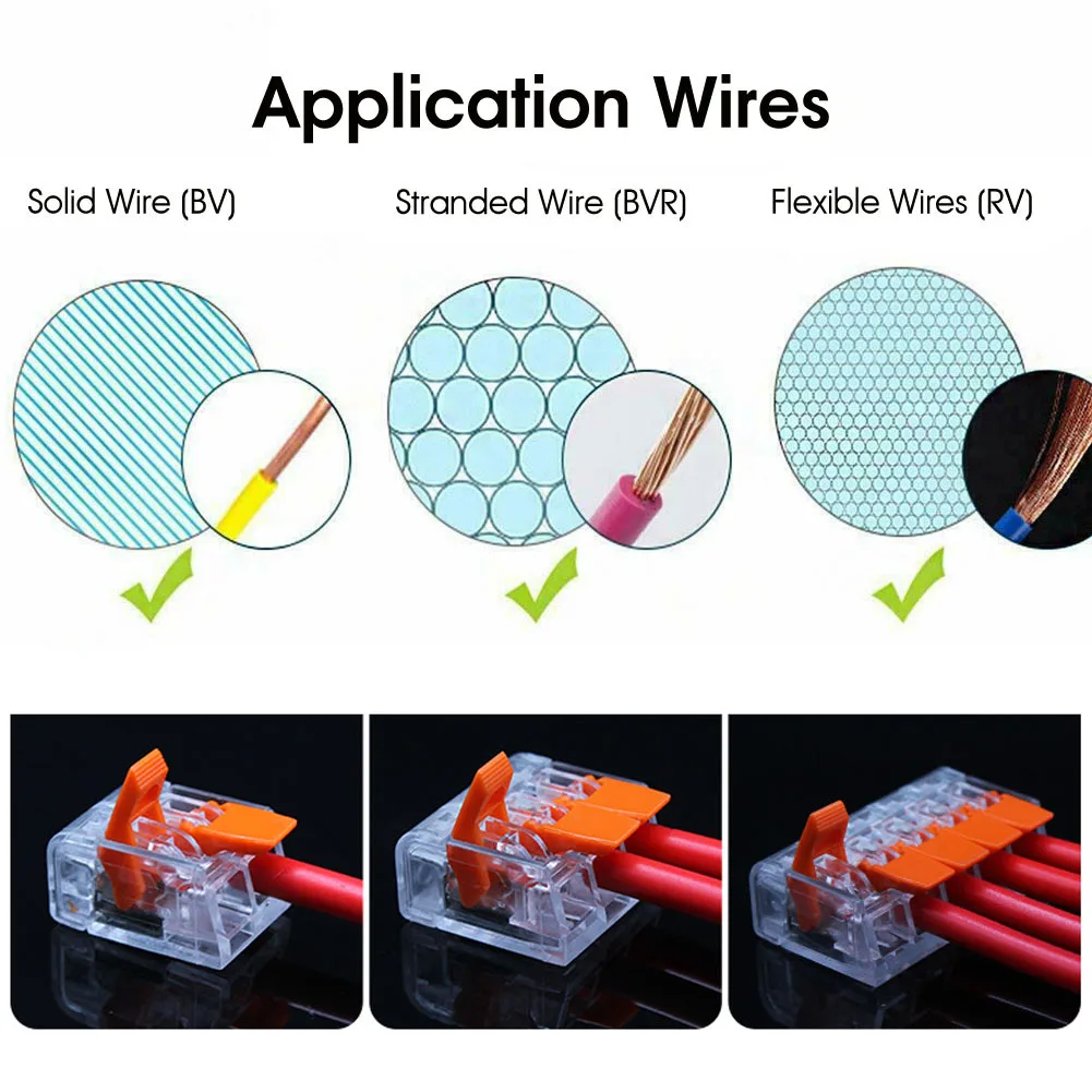 * Подключите любую комбинацию твердых, многожильных и гибких медных проводов надежно