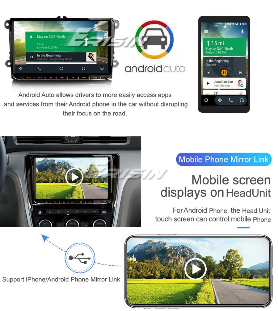 --Сенсорное управление и hd-дисплей: Двунаправленное управление и просмотр телефона на автомобильном навигационном экране с помощью USB-кабеля.