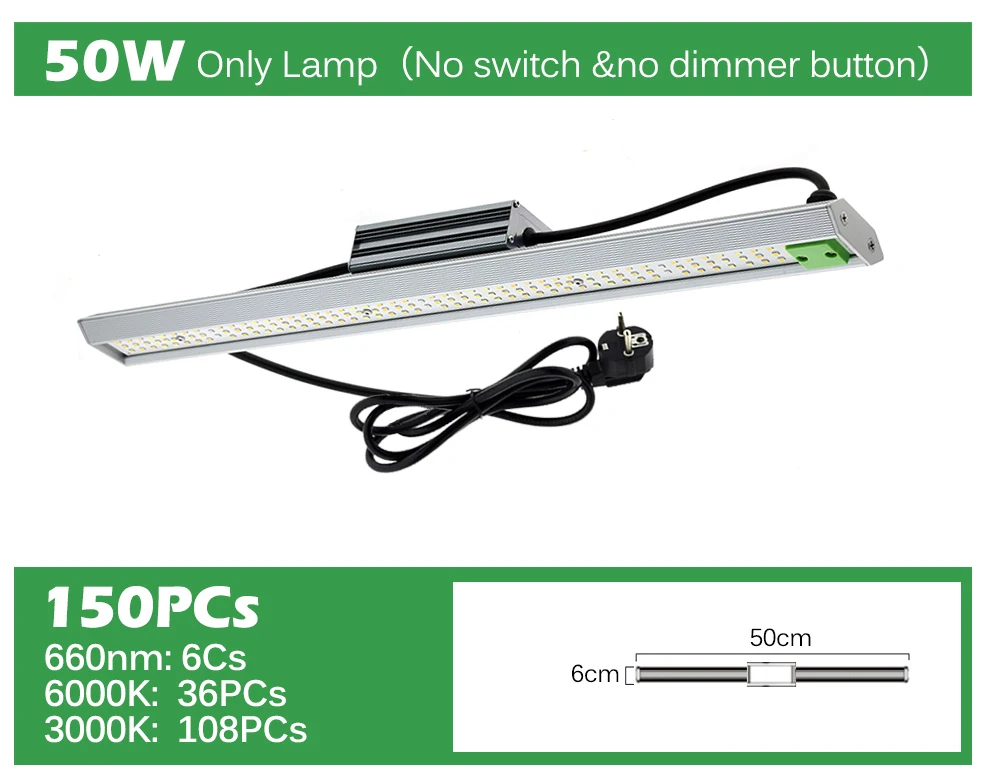 50 Вт (150 шт.: 660nm-6 шт.; 6000K-36 шт.; 3000K-108 шт.)