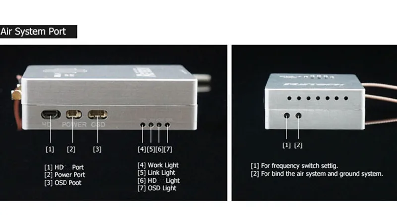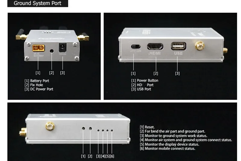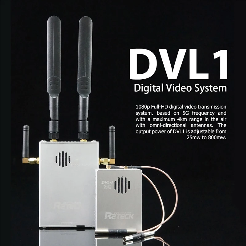 DVL1-это 1080p Full-HD цифровая система передачи видео, включая воздушную часть и наземную часть. DVL1 передает видео, изображения, OSD и больше информации в режиме беспроводной связи. DVL1 идеально подходит для всех сфер передачи видеосигнала из-за его светильник вес, низкая потребеление энергии, дальнее расстояние и низкой задержкой. DVL1 цифровая система передачи видео основана на 5G частоте и с максимальным диапазоном 5 км в воздухе с всенаправленными антеннами. Задержка составляет менее 100 мс. Пожалуйста, поставьте антенну наземной системы с широкой стороны к передатчику, в противном случае, рабочее расстояние будет уменьшено до 50%. Выходная мощность DVL1 регулируется от 20 МВт до 800 МВт. Модуль приемника имеет выход HDMI и выход wifi, поэтому Беспроводное видео может отображаться на мониторе и мобильном телефоне одновременно.