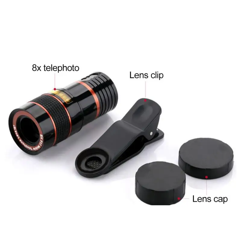 (8) Products include: telephoto lens, clip, cleaning cloth.