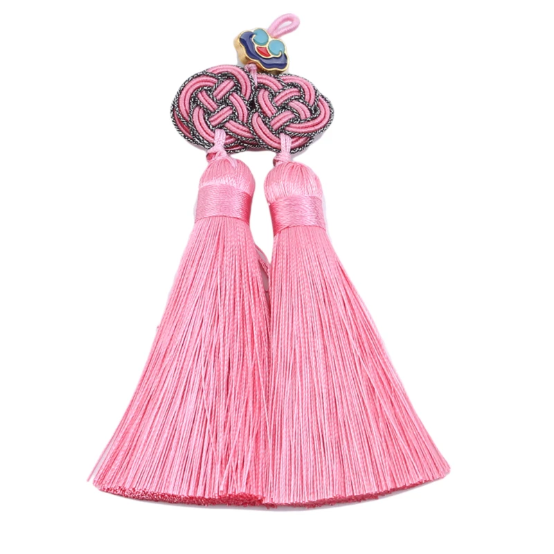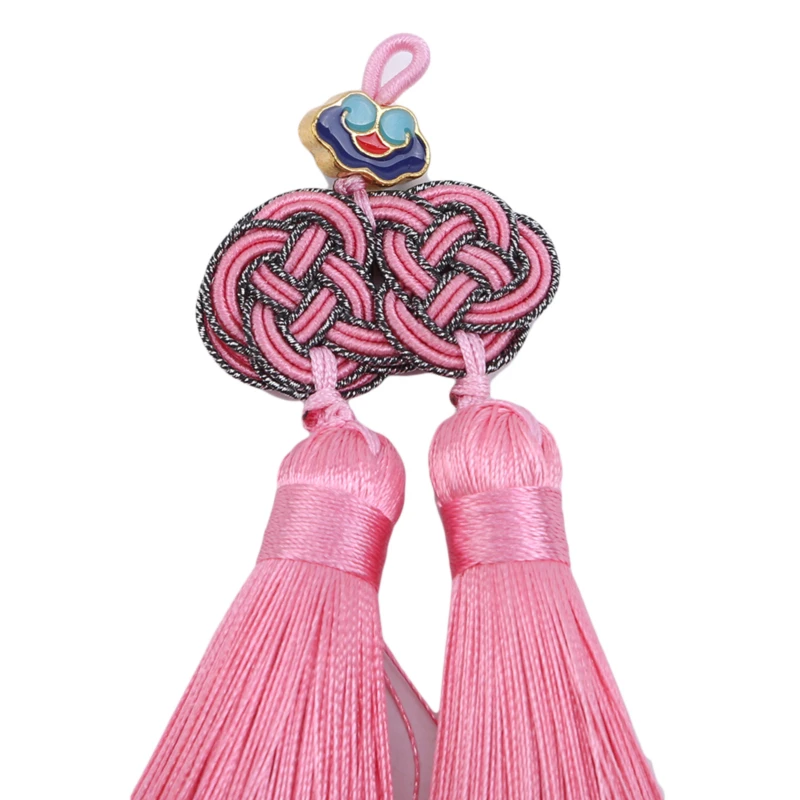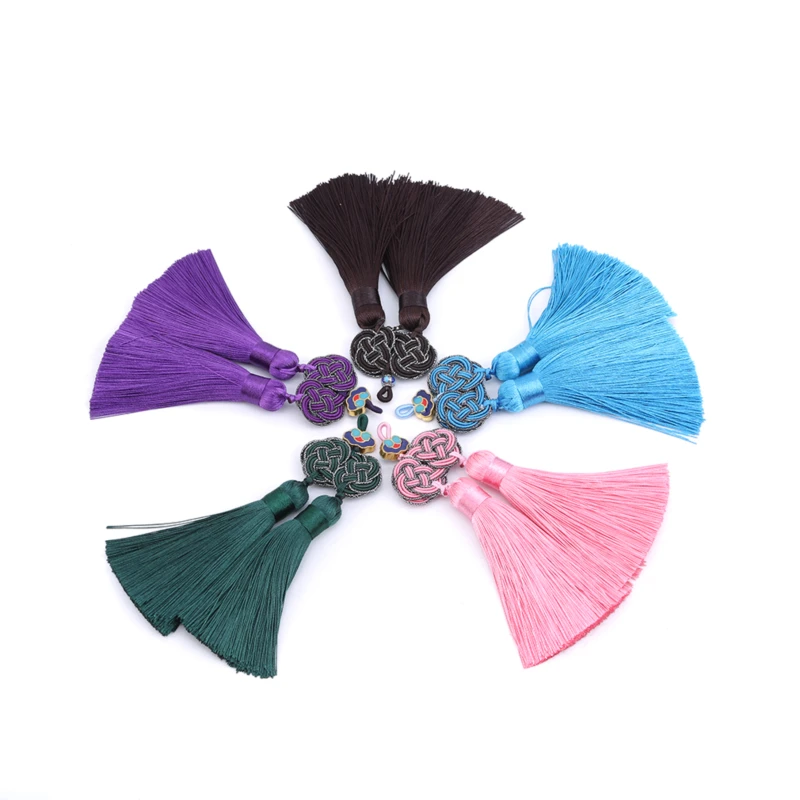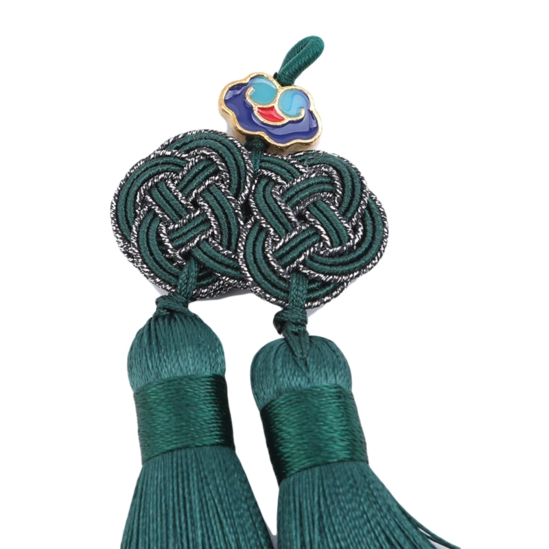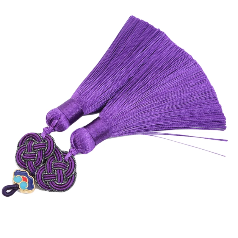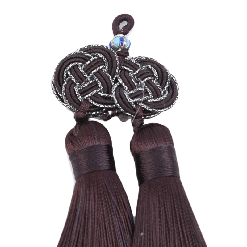 Размер:Общая длина: 13 см, с бахромой длиной 8 см, украшения в виде китайского узелка 4*2,5 см