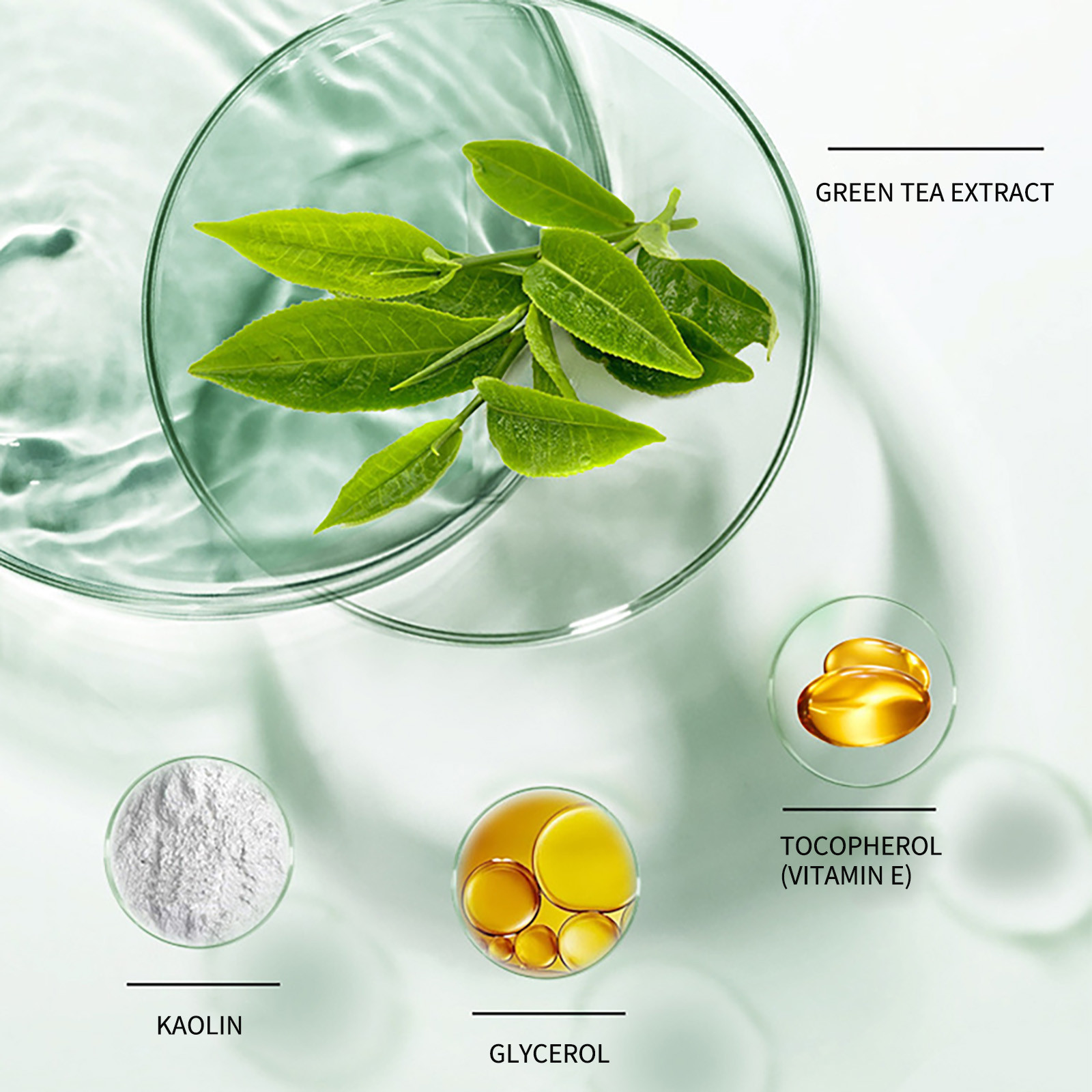 Однотонная Очищающая маска зеленого чая содержит экстракт зеленого чая, который может