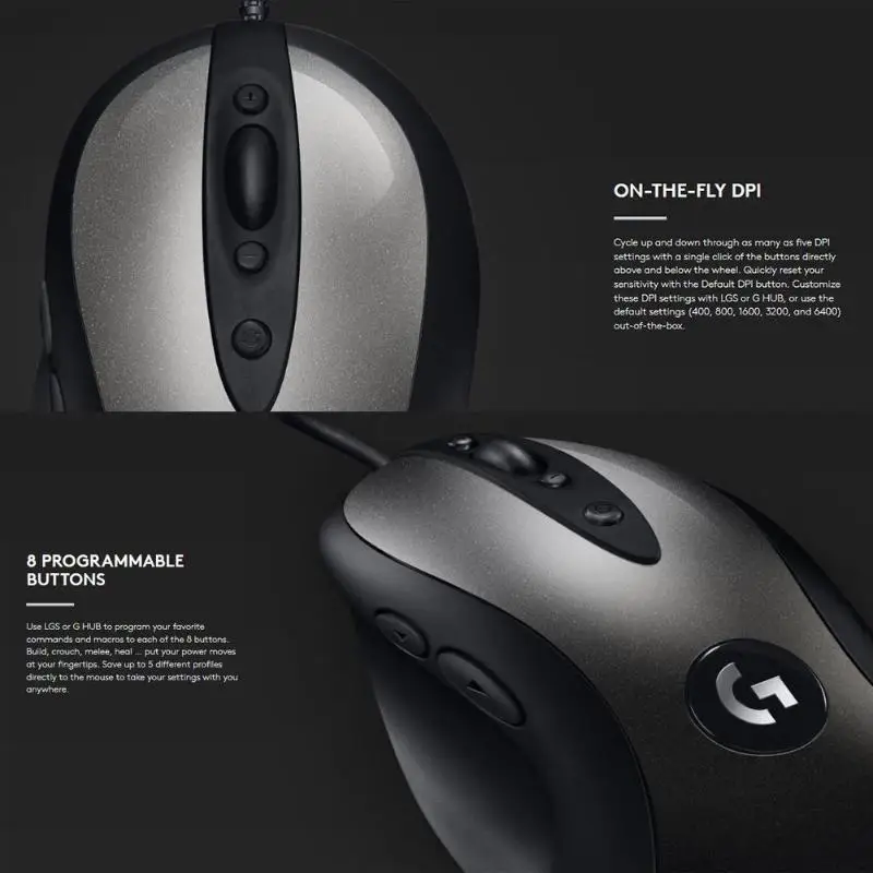 MX518 возрождается в огне. Используйте Logitech Gaming Software (LGS) или Logitech G HUB, чтобы сохранить до пяти профилей на вашей встроенной памяти и взять их с собой. Сохраненные настройки можно использовать на любом ПК без установки дополнительного программного обеспечения или входа в Вашу учетную запись.