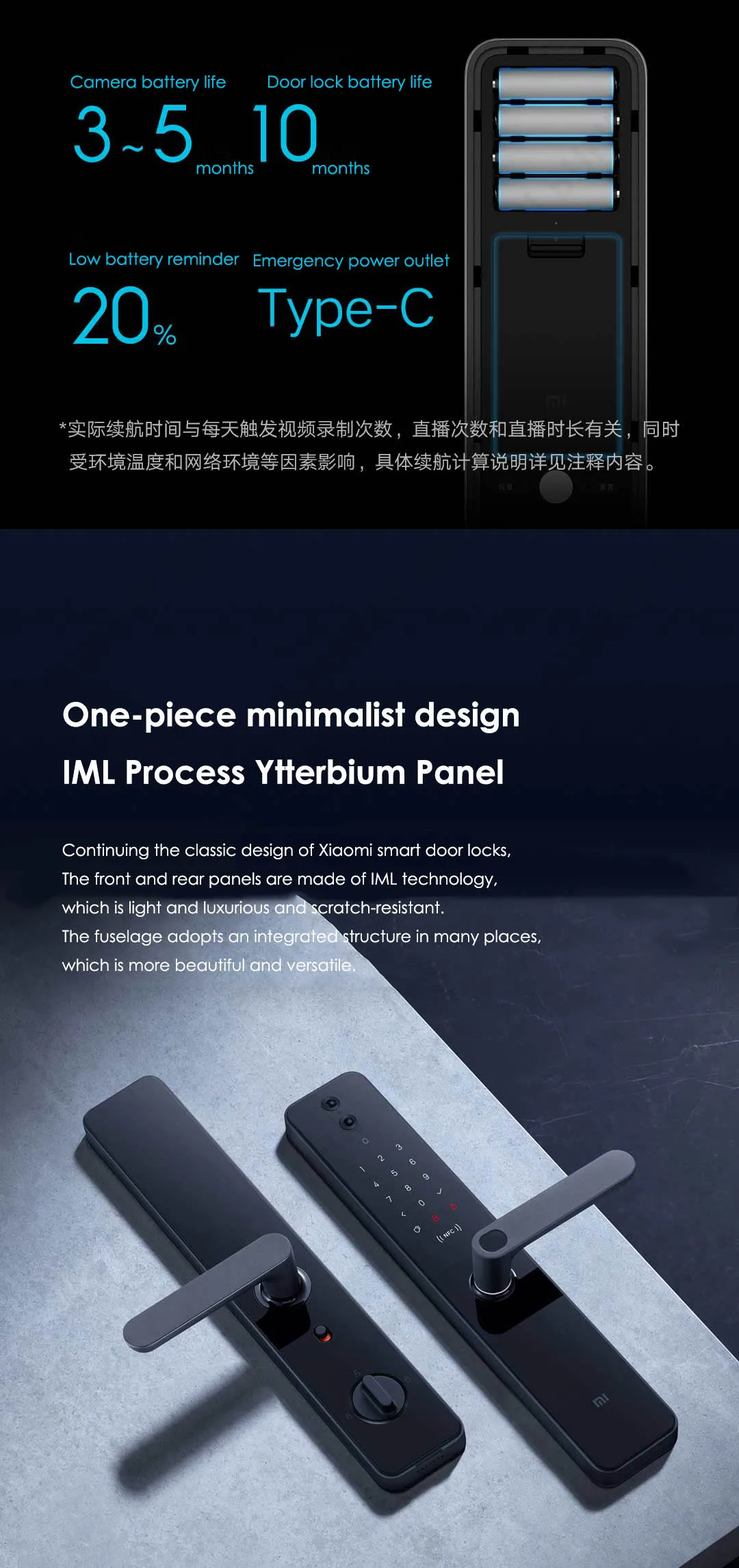 Настоящий врезной замок класса С. Интеллектуальный цилиндр замка. Интегрируйте 3D идентификацию отпечатков пальцев. 6 режимов разблокировки: отпечаток пальца, NFC, bluetooth, пароль, временный пароль, экстренная кнопка Удаленная сигнализация. Функция защиты от вскрытия. Управление приложениями Mi Home. Используется для левая и правая дверь.
