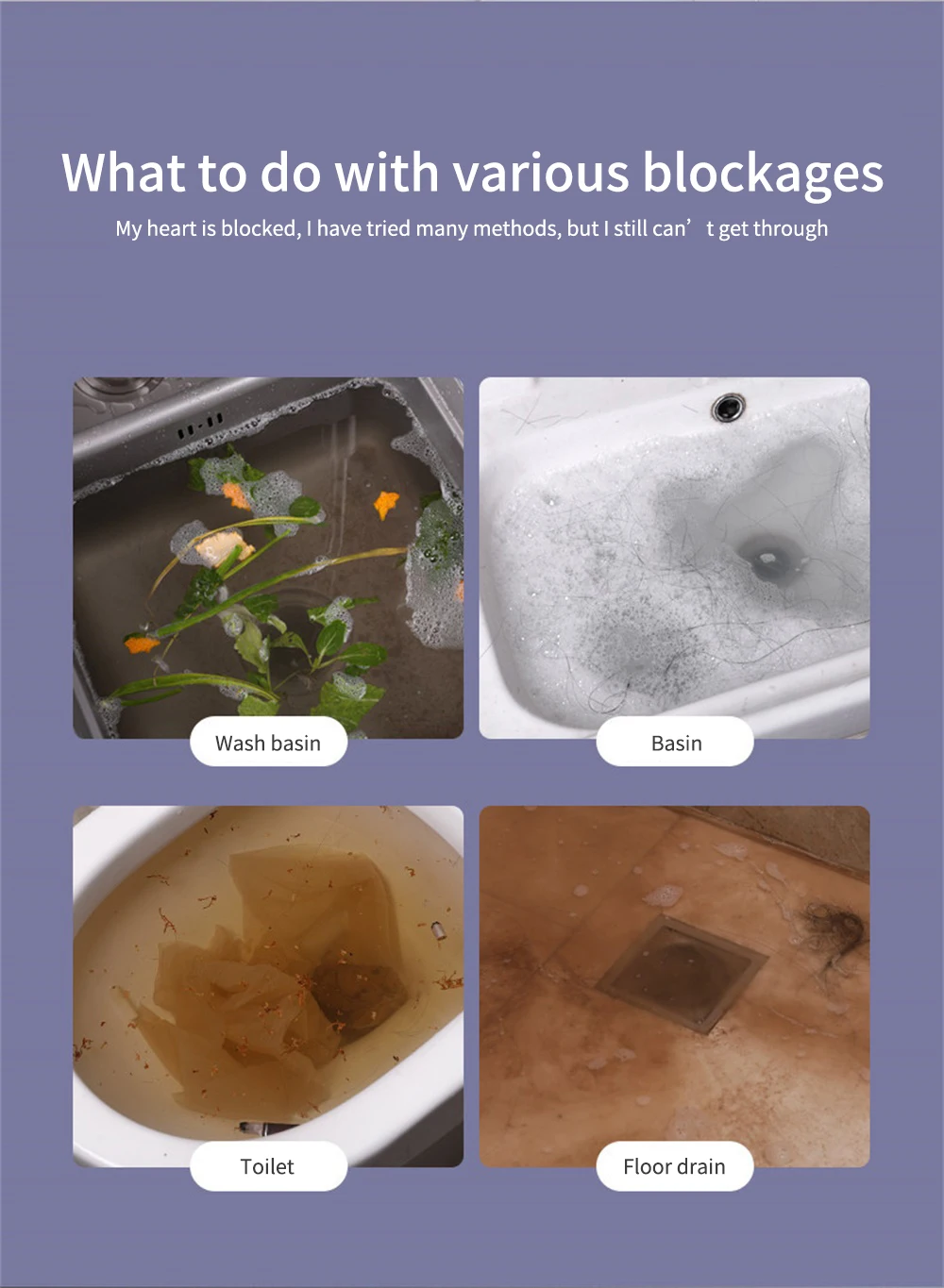 В нашей повседневной жизни мы часто сталкиваемся с закупорками в туалете, раковине, сливе и канализации. Трудно чистить и плохо пахнет. Это многофункциональное дноуглубительное устройство может легко решить вышеуказанные проблемы, поэтому вам больше не придется расстраиваться.