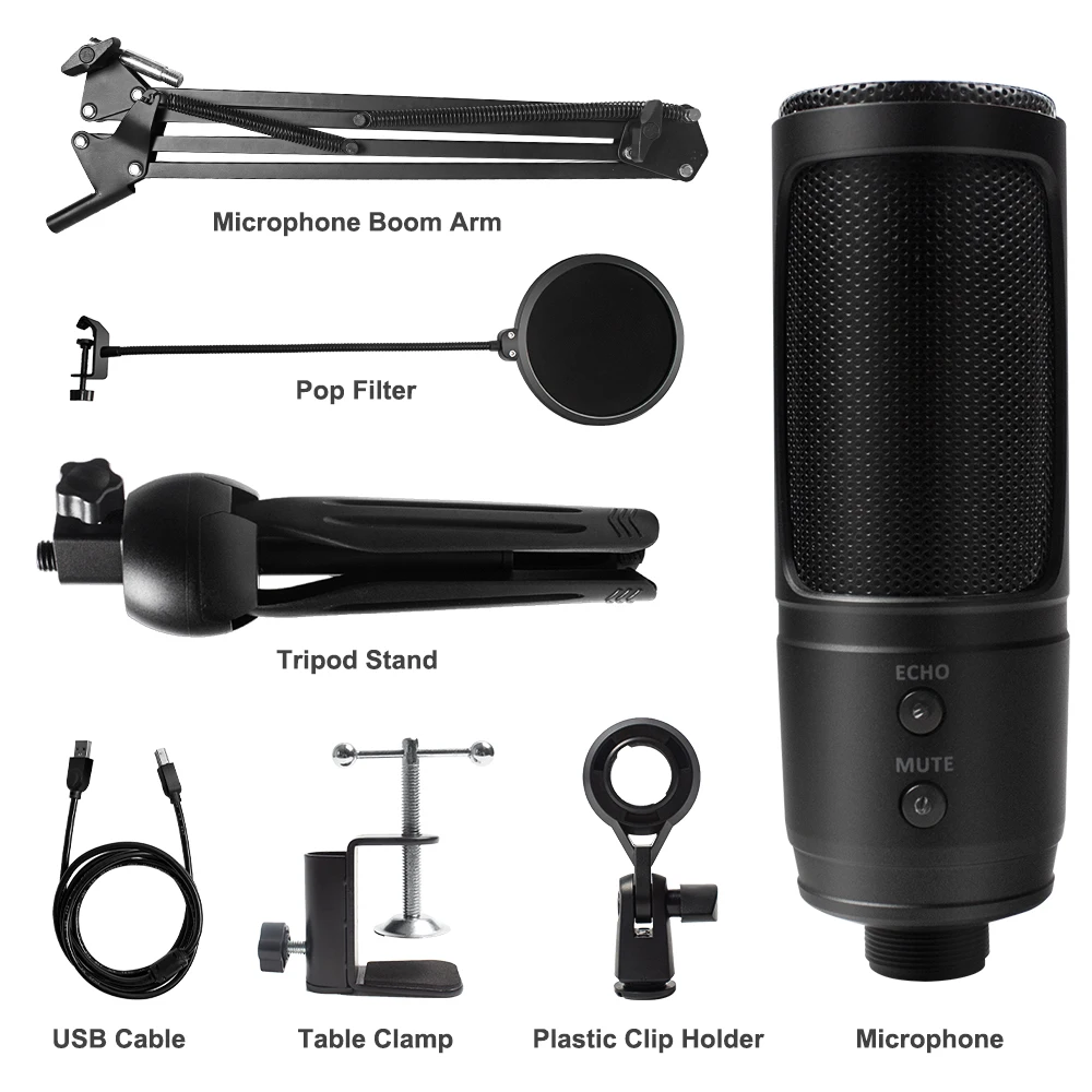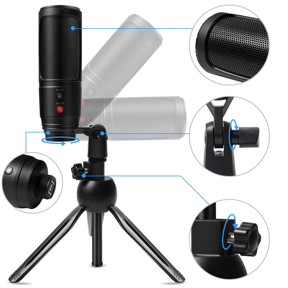 USB plug and play микрофон совместим с ПК и ноутбуками.