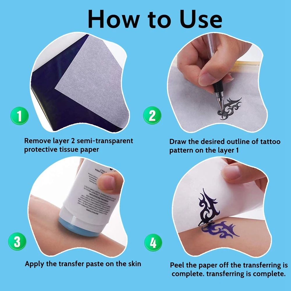 -Переводная бумага позволяет отследить или трафаретные изображения от их исходного источника, к копировальной бумаге и в итоге к коже.