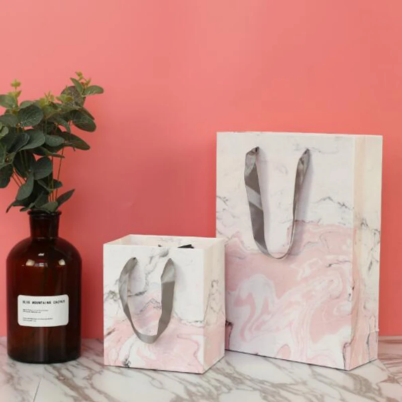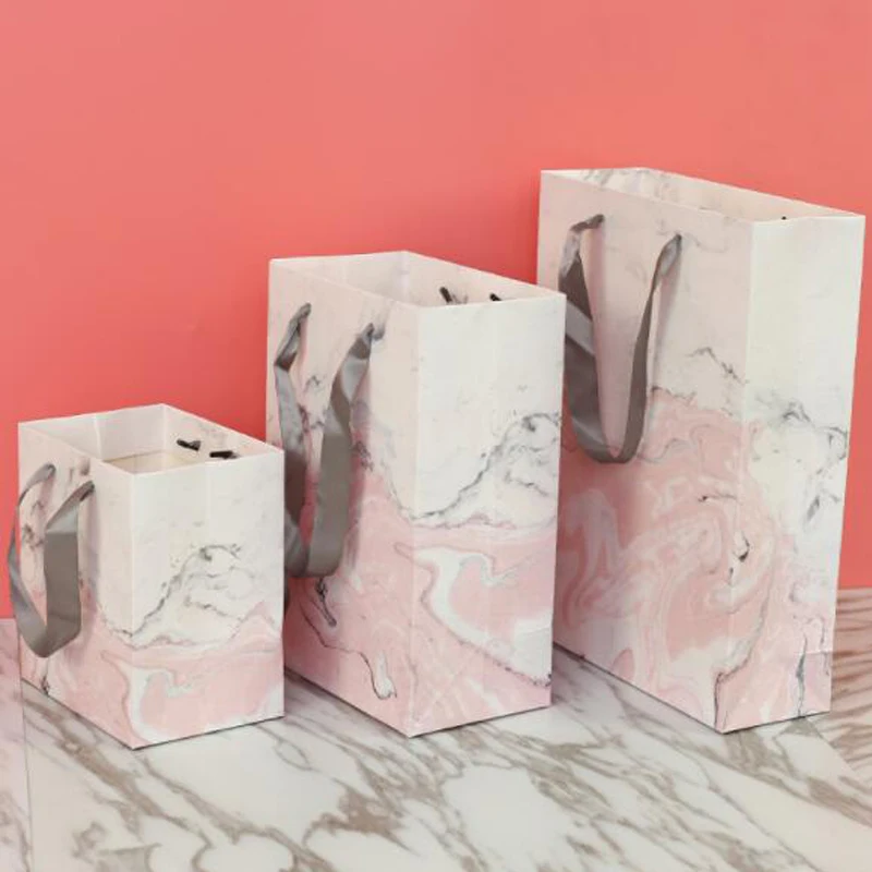 5pcs Fashion Marbling Gradient Pink Large Gift Bag Party Wedding Promotion Flower Candy Packaging Decoration Portable Gift Bag