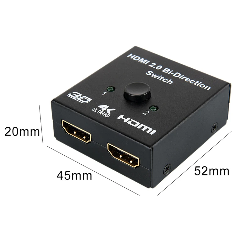 Этот двунаправленный HDMI переключатель/разветвитель очень универсален, поскольку она может использоваться в качестве 2 портовый коммутатор или 2 порта USB разветвитель/селектор. Это означает, что у вас есть возможность использовать это с одним хост-устройством (т. Е. Bluray Player, PS3 и т. д.) и есть сигнал, отправленный на два дисплея (телевизор, монитор, проектор и т. Д.), А затем просто используйте кнопку выбора для переключения сигнала между дисплеями. Вы также можете использовать это в качестве традиционного hdmi-переключателя, где вы подключаете к нему два хост-устройства, и переключаться между ними для отображения на одном телевизоре/мониторе. Кроме того, устройство является небольшим и компактным, что обеспечивает легкую установку и удобную портативность.