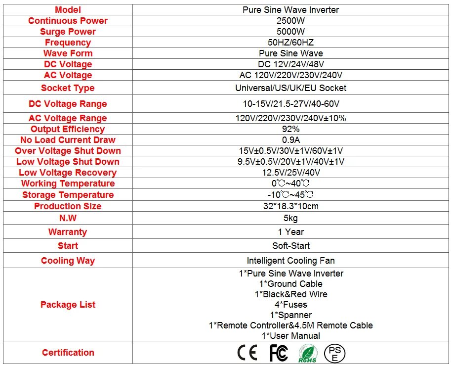 Чистый синусоидальный инвертор 5000 Вт/2500 Вт DC 12 В 24 В 48 В переменного тока 120 в 220 в 230 в 240 В для RV лодки автомобиля конвертер + пульт дистанционного управления