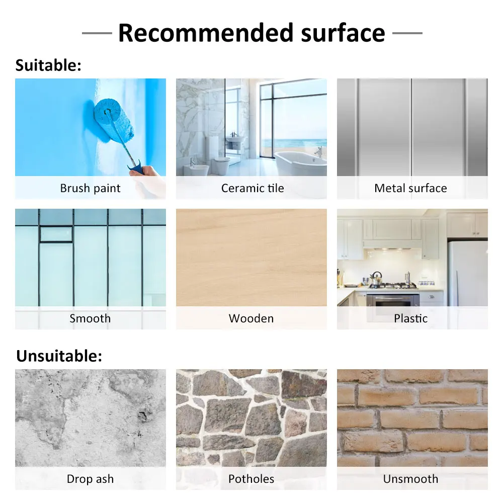 Перед использованием лучше выбрать гладкую поверхность стены, протрите пыль от стены тряпкой, подождите, пока вода высохнет, прежде чем прикрепить обои, затем нажмите его рукой в течение минуты или двух, он будет гораздо сильнее!