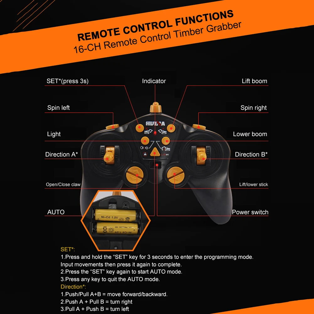 * 3. 16-канальный древесины захватить достигает движений двигаться вперед/назад, поворот влево/вправо, снижая тем самым/подъема руки, захвата, светильник вкл/выкл и т. д.