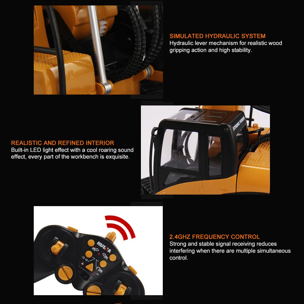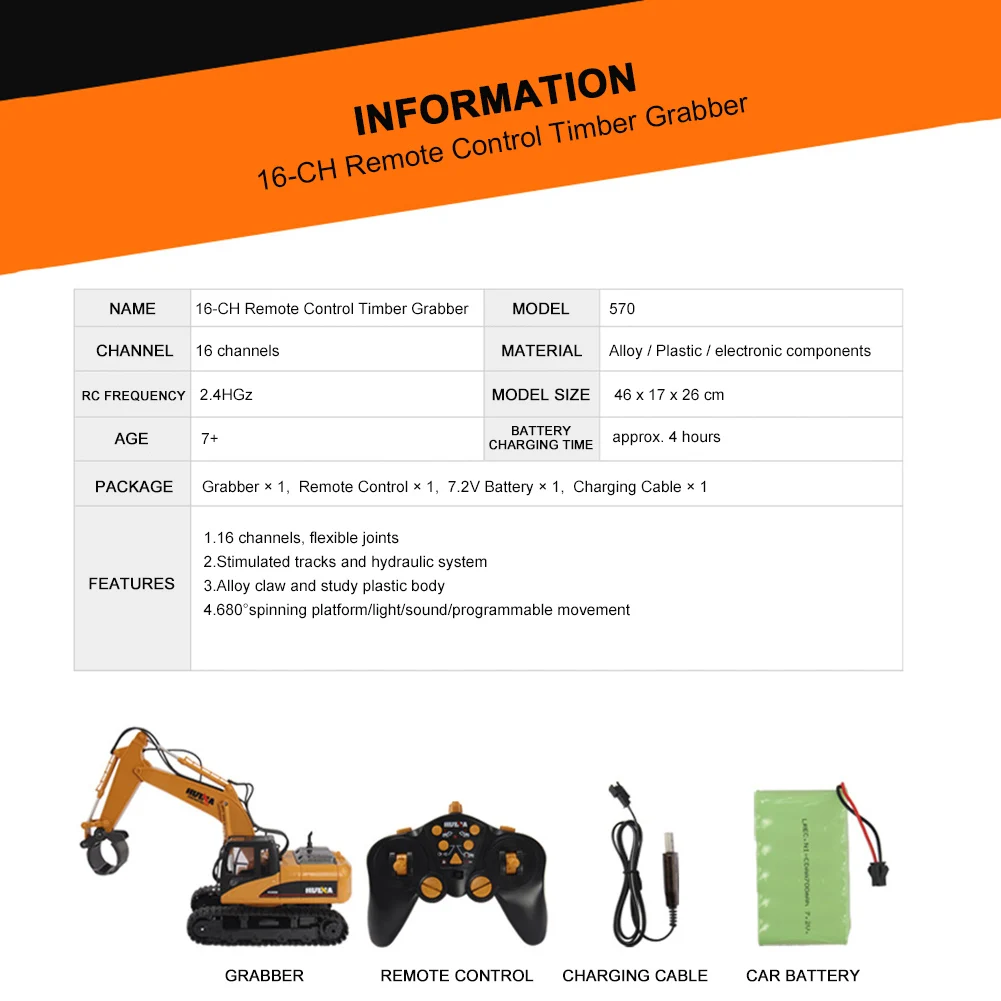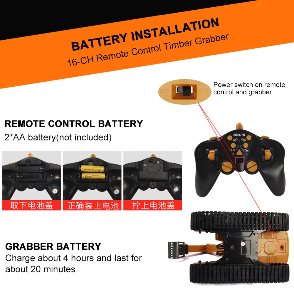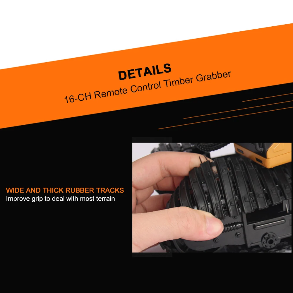 * 1. 1:14 масштабный захват древесины под давлением в основном изготовлен из сплава и пластика, с высокой прочностью и ударопрочностью, резиновая дорожка обеспечивает хорошее сцепление с различными видами дождей.