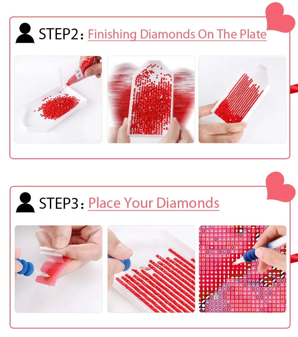 6. Для того, чтобы создать идеальную алмазную картину, рисунки, собранные в одном месте, каждый ряд символов не обязательно оставаться прилипающими алмазами.