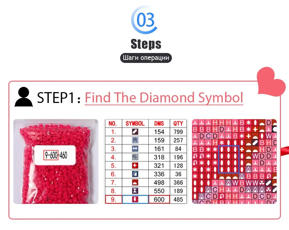 1. Откройте коробку и проверьте алмазным рисунком специальные инструменты.