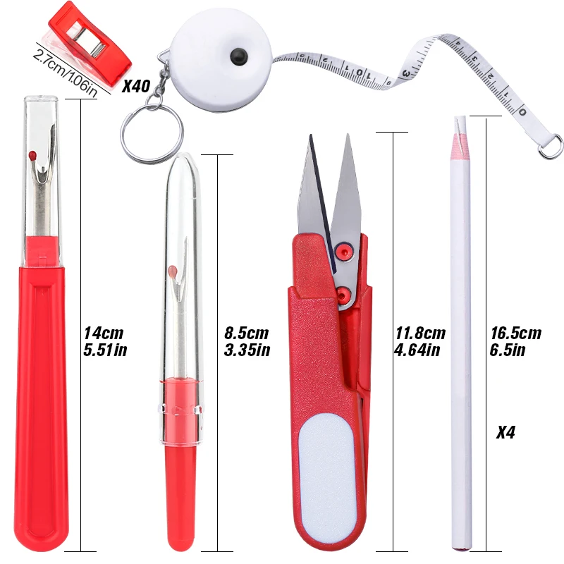 Цвет/размер: как показано на картинке. Преимущества: инструменты завершены и экономически эффективны. Посылка содержит: Линейка * 1 Зажимы * 40 Карандаш * 4 Ножницы * 1 Шовные ножницы * 2